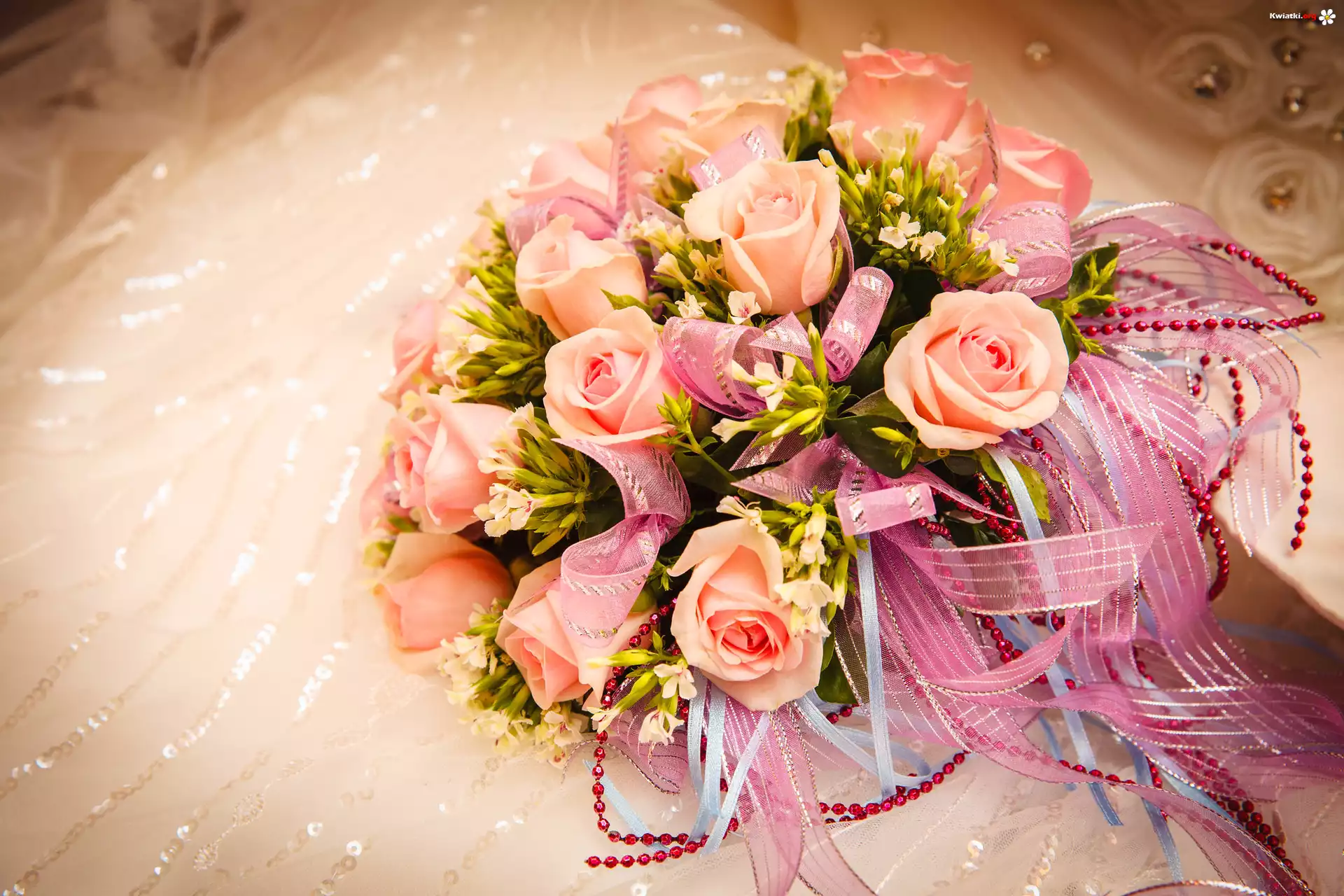 Kwiaty, Róże, Bukiet kwiatów, Wstążka, Rozmycie - Zdjęcia