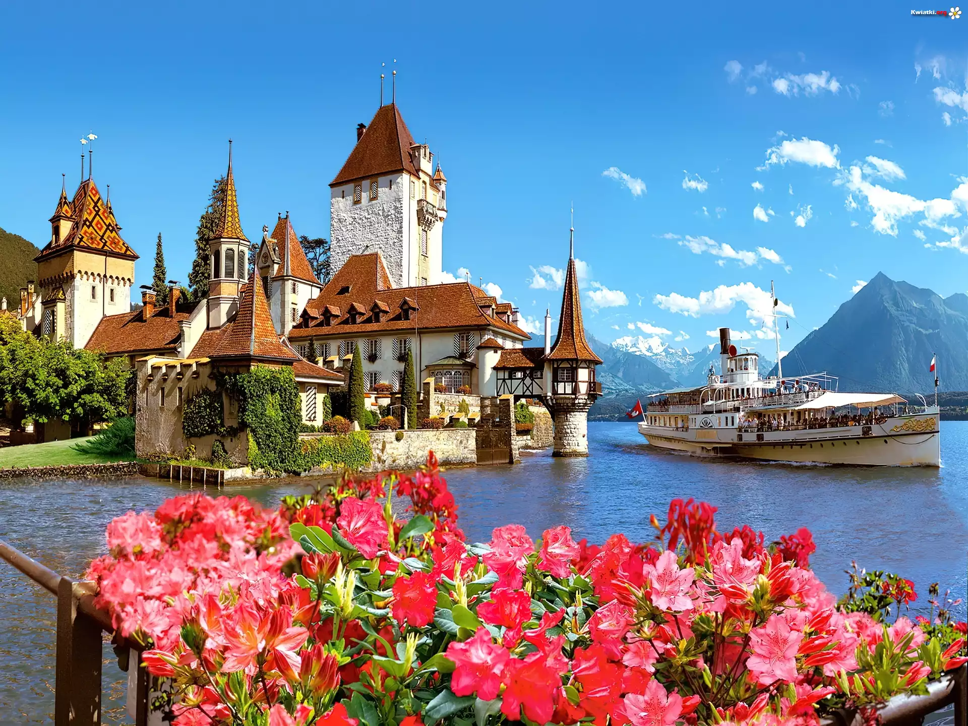 Wiosna, Park, Tulipany, onkile, awka, Drzewa Fioletowy, Kwiat, Cykoria Podrnik Ogrd, Czosnek, Ozdobny, Alejki