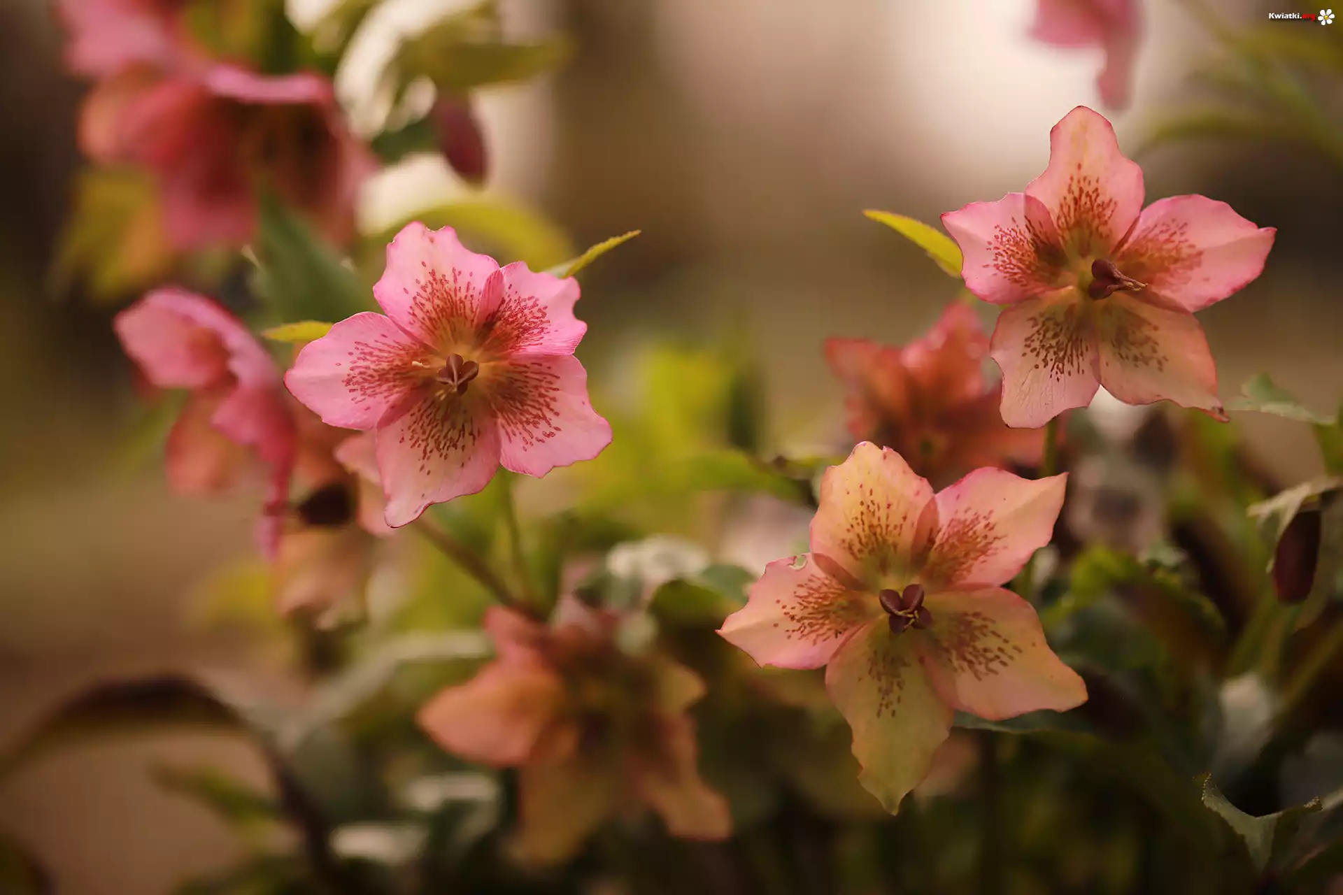 Kwiat Zbliżenie, Różowe, Ciemierniki, Kwiaty