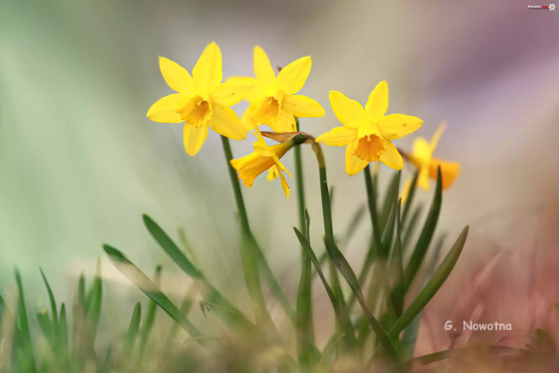 Narcyzy żonkile, Żółte, Kwiaty, Kępka, Zbliżenie - Zdjęcia