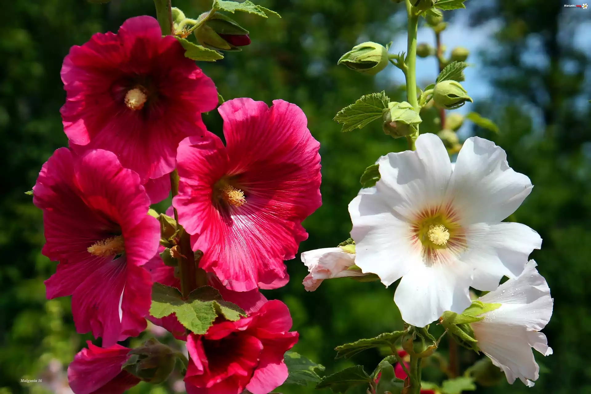 Kwitnące, Białe, Czerwone, Malwy - Zdjęcia