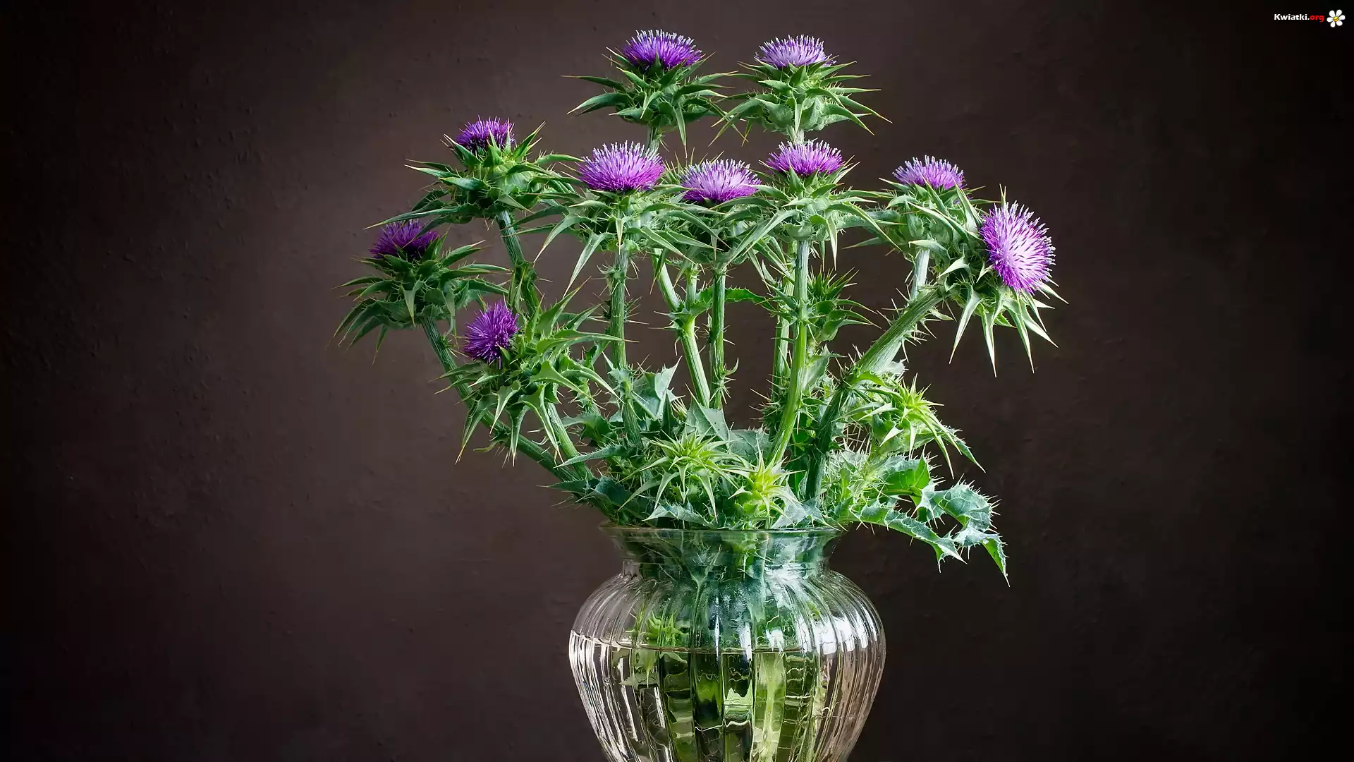 Kwitnący, Oset, Szklany, Wazon - Zdjęcia