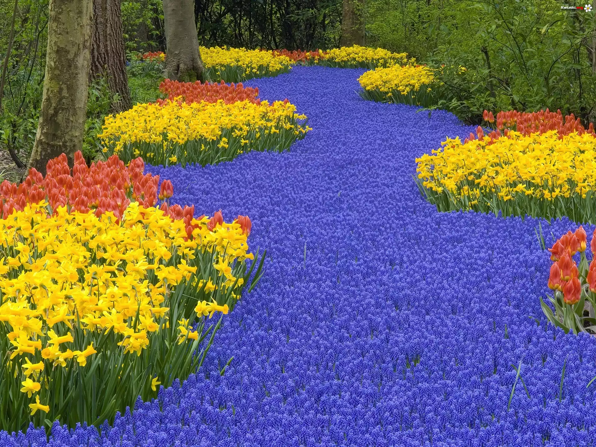 Kwiat Las, Dużo, Kwiatów, Żonkile, Tulipany