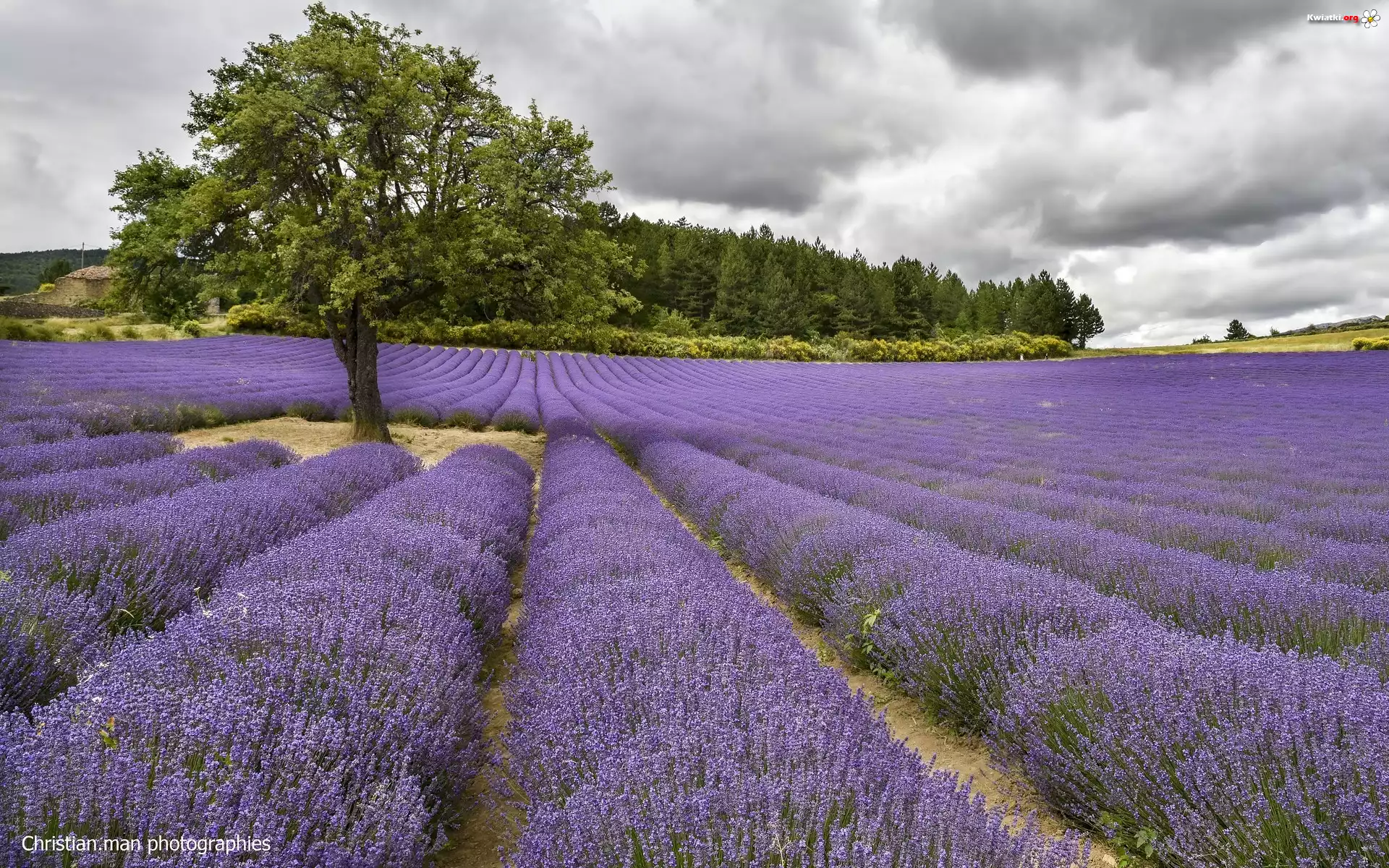 Pole, Lawenda, Drzewo, Las - Zdjęcia