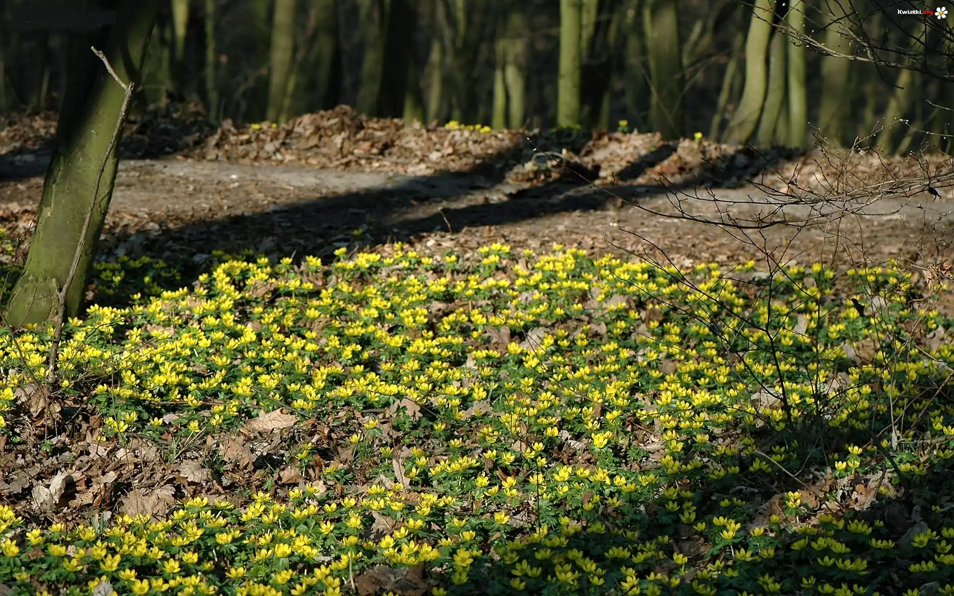 Kwiat Wiosna, Las, Rannik, Zimowy, Przebijające, Światło, Romycie