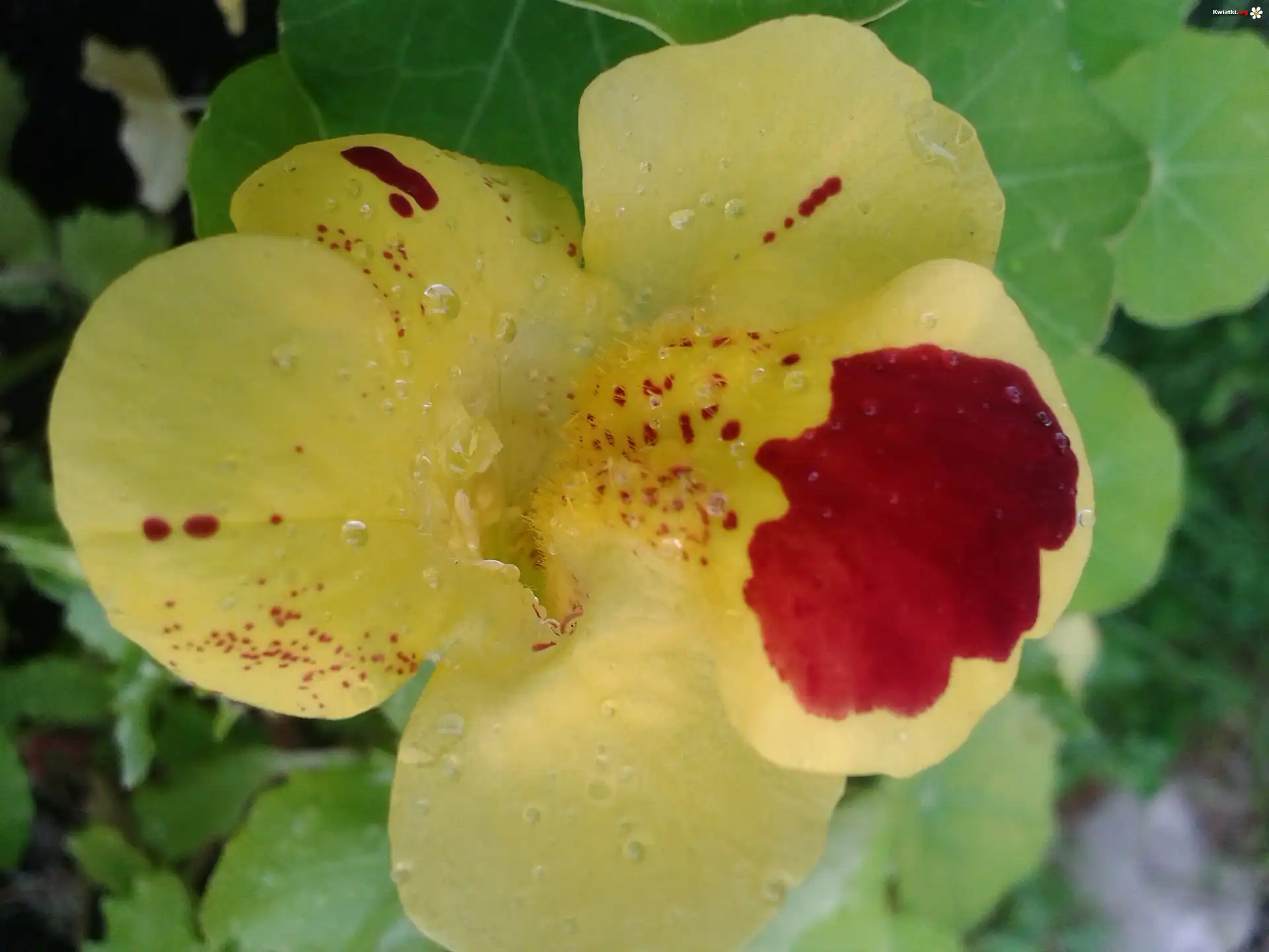 Kwiat Lato, Nasturcja, Krople, Żółty, Kwiat