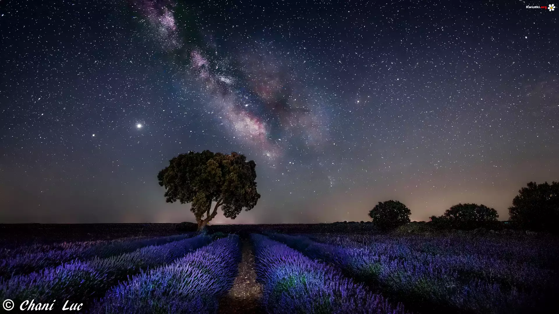 Pole, Lawenda, Drzewo, Noc, Gwiazdy, Droga Mleczna - Zdjęcia