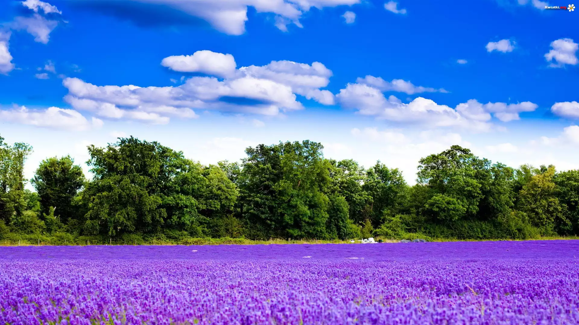 Lawendowe, Pole, Chmury, Drzewa - Zdjęcia