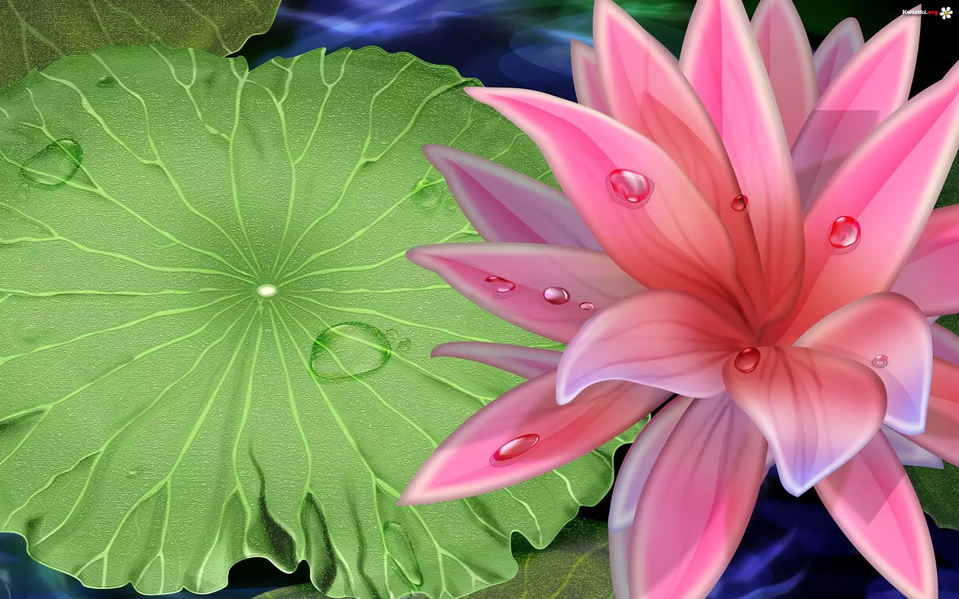 Kwiat Lilia, Wodna, Liść, Krople, Wody