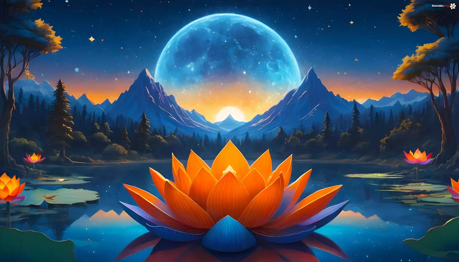 Grafika AI, Kwiaty, Lilia wodna, Góry, Jezioro - Zdjęcia