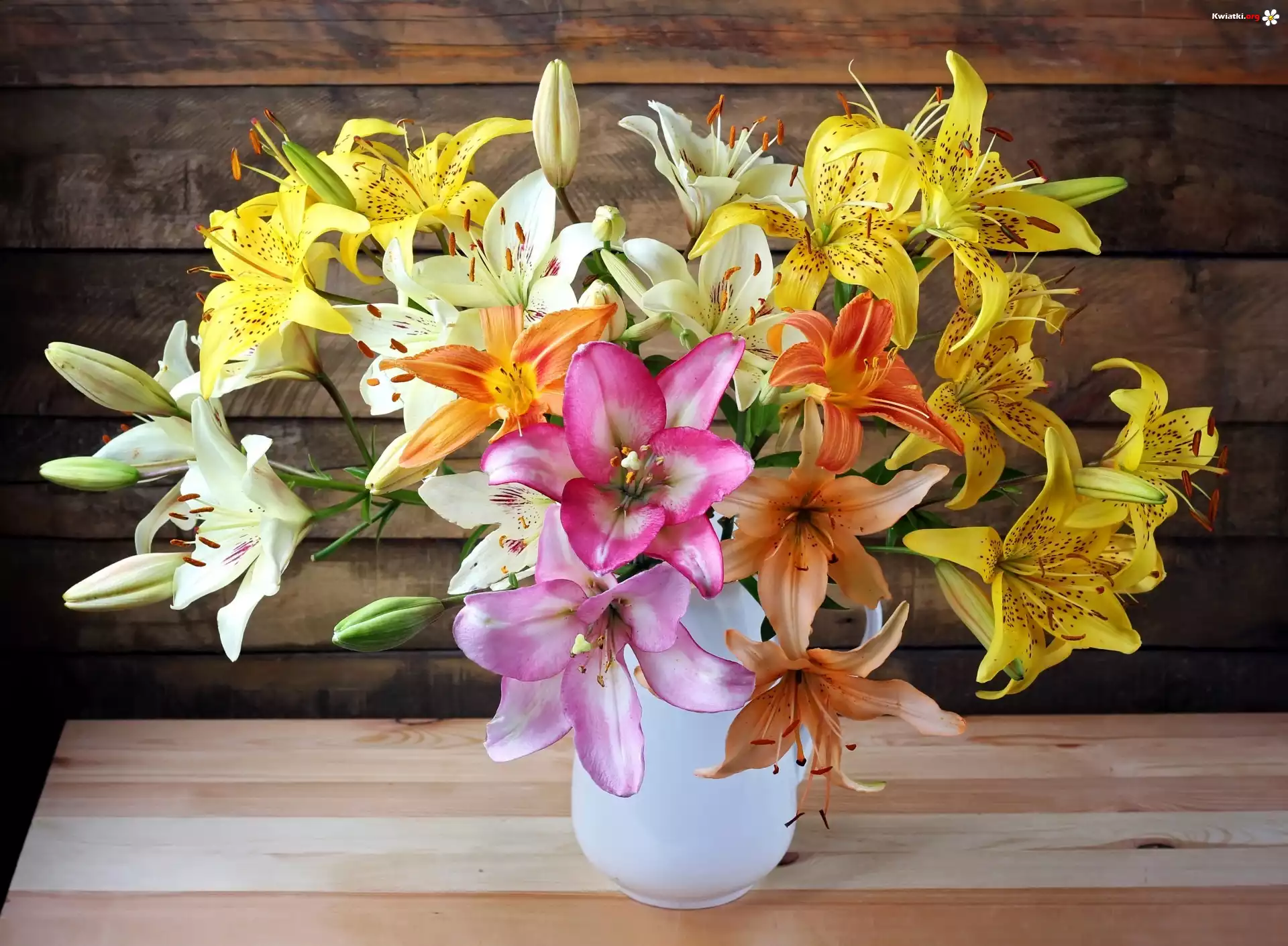 Kolorowe, Lilie, Wazon - Zdjęcia