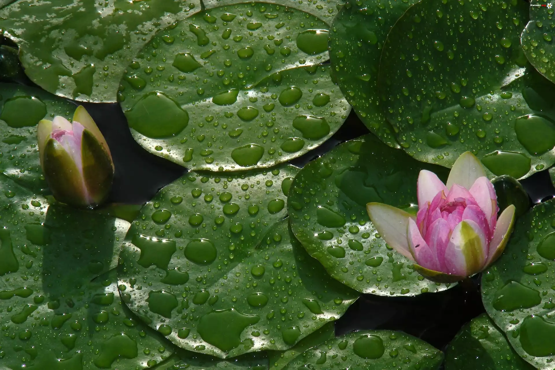 Lilie, Wodne, Krople, Deszczu - Zdjęcia