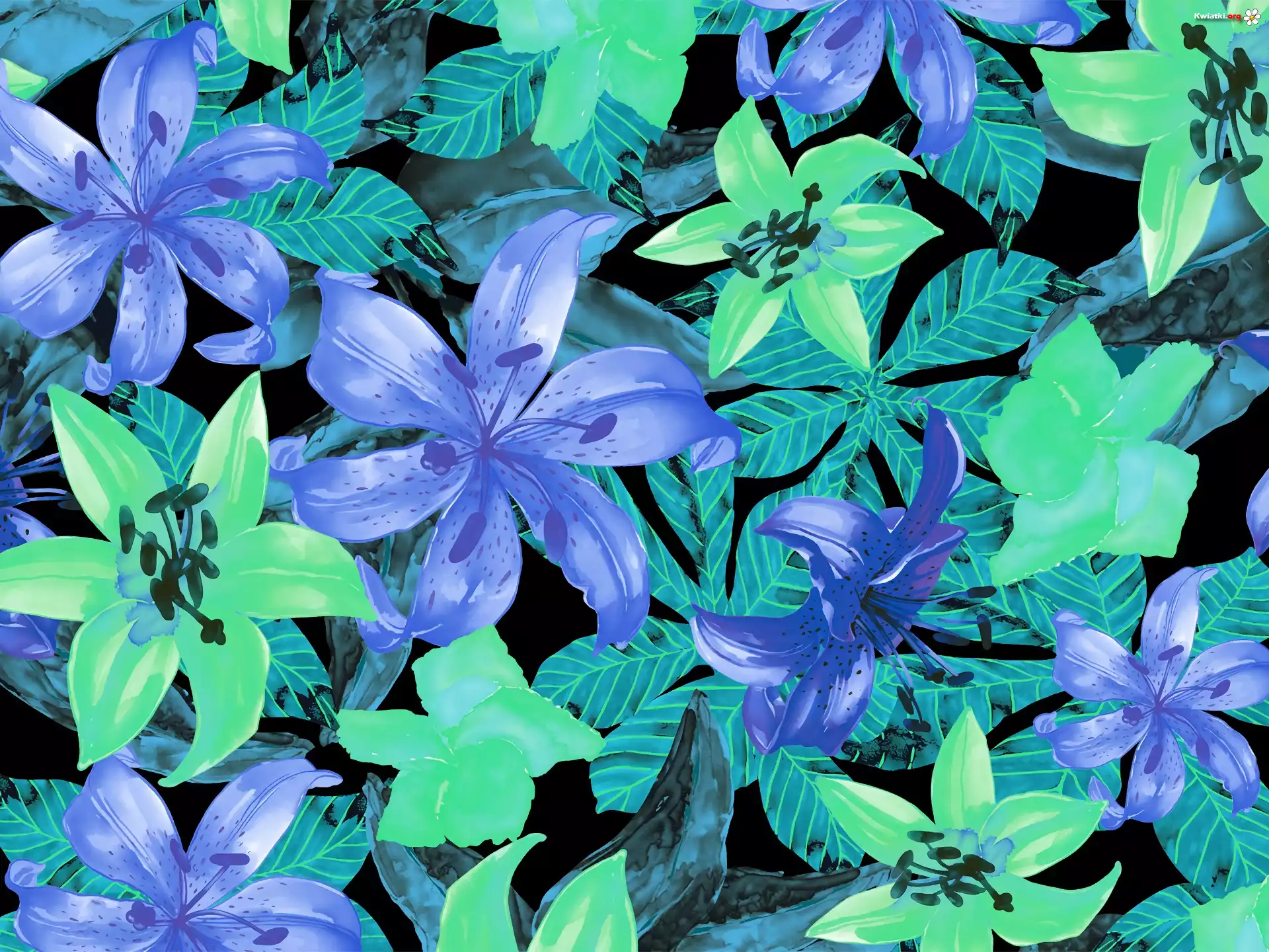 Lilie, Zielone, Niebieskie, Tekstura - Zdjęcia