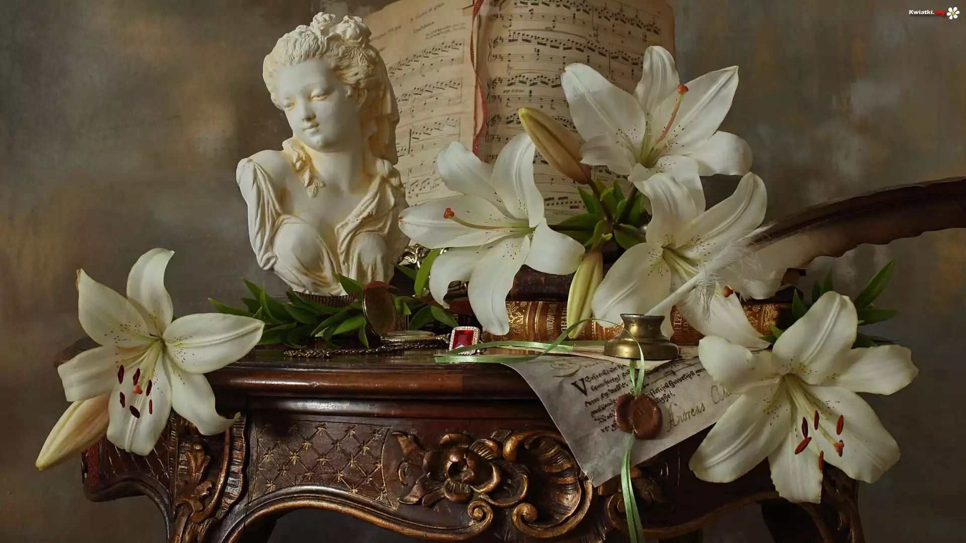 Kwiat Lilie, Popiersie, Nuty, Stolik, Kompozycja