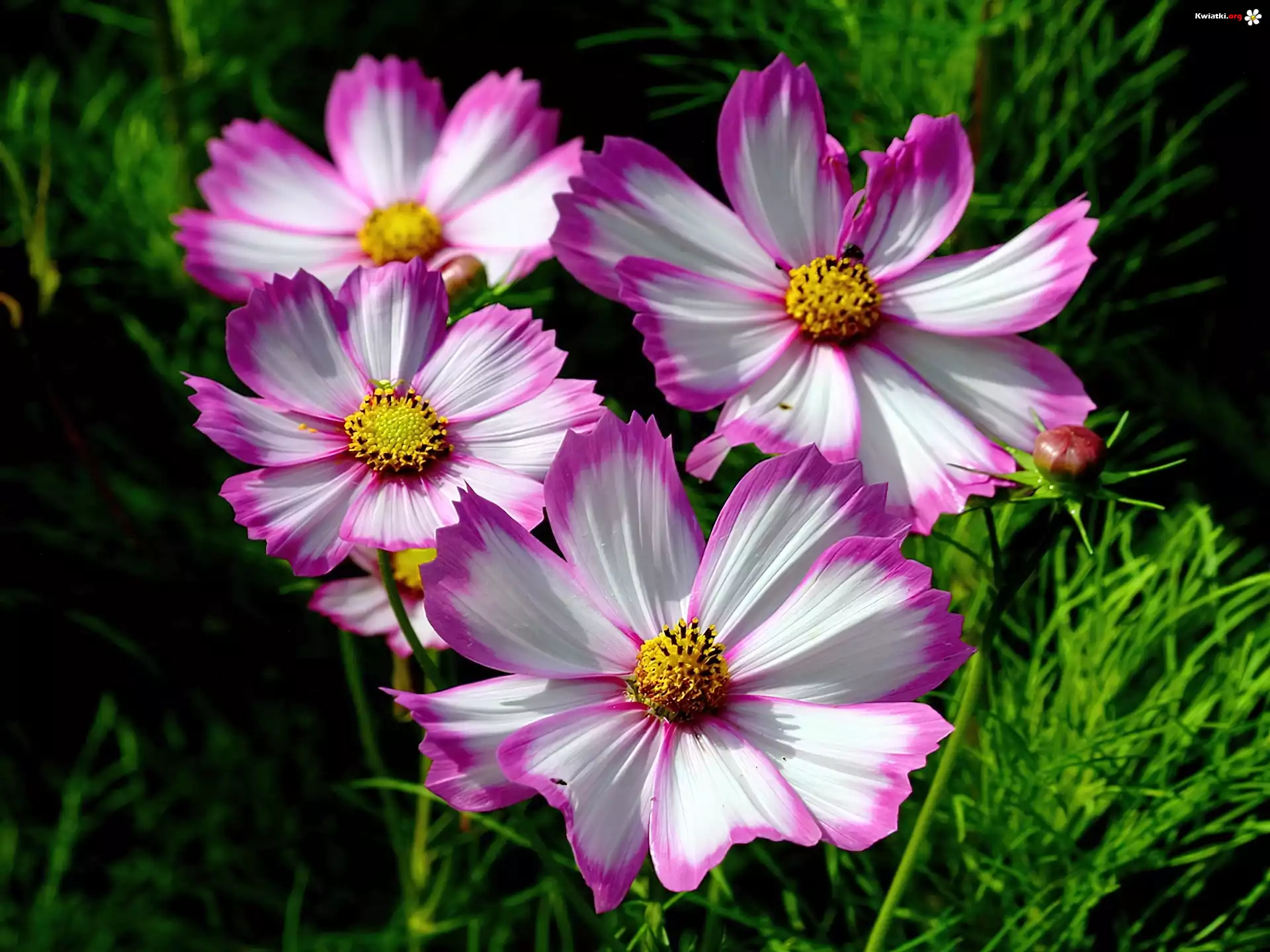 Biało, Fioletowe, Kwiaty, Kosmea - Zdjęcia
