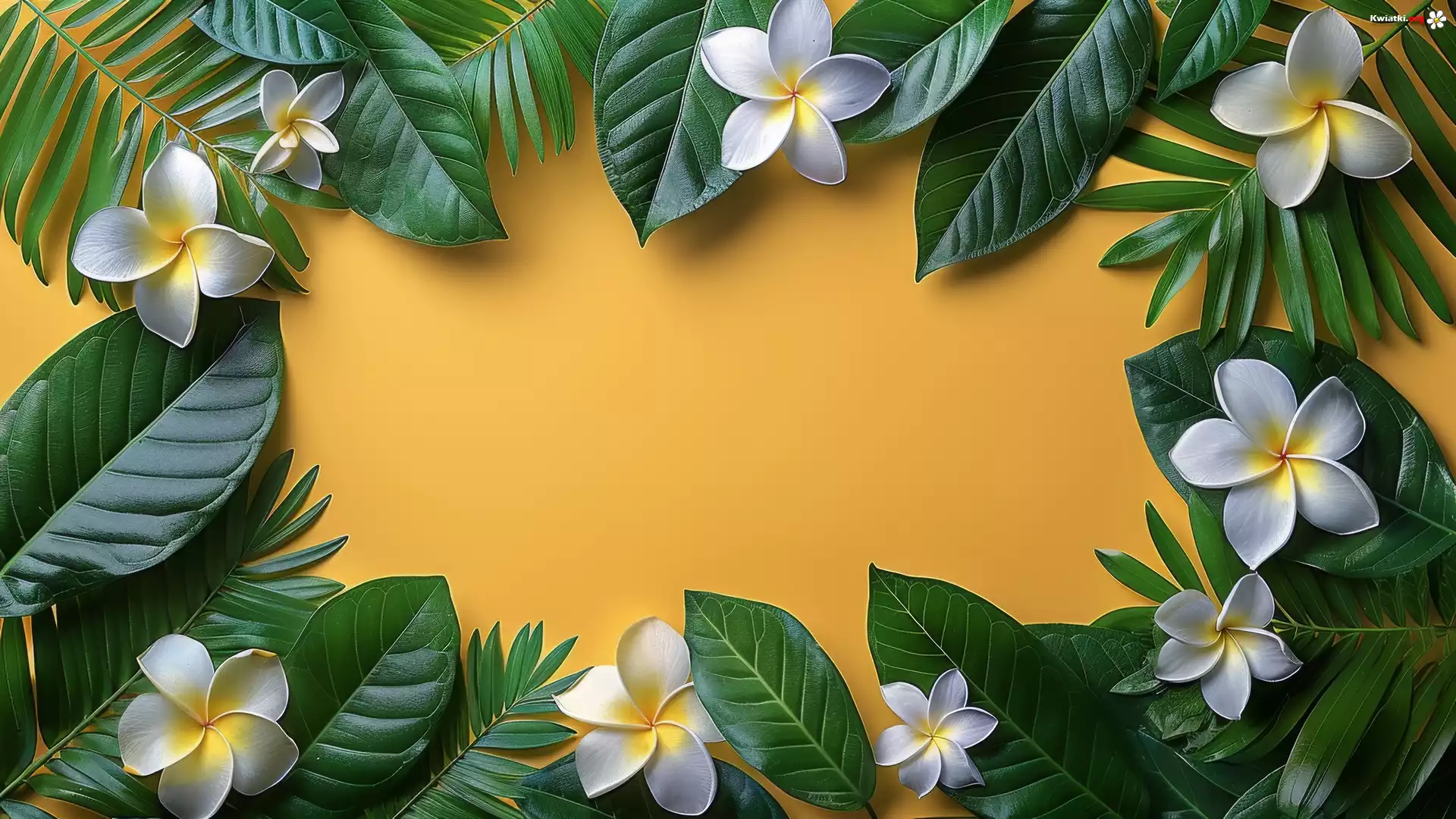 Kwiat Plumeria, Białe, Kwiaty, Liście