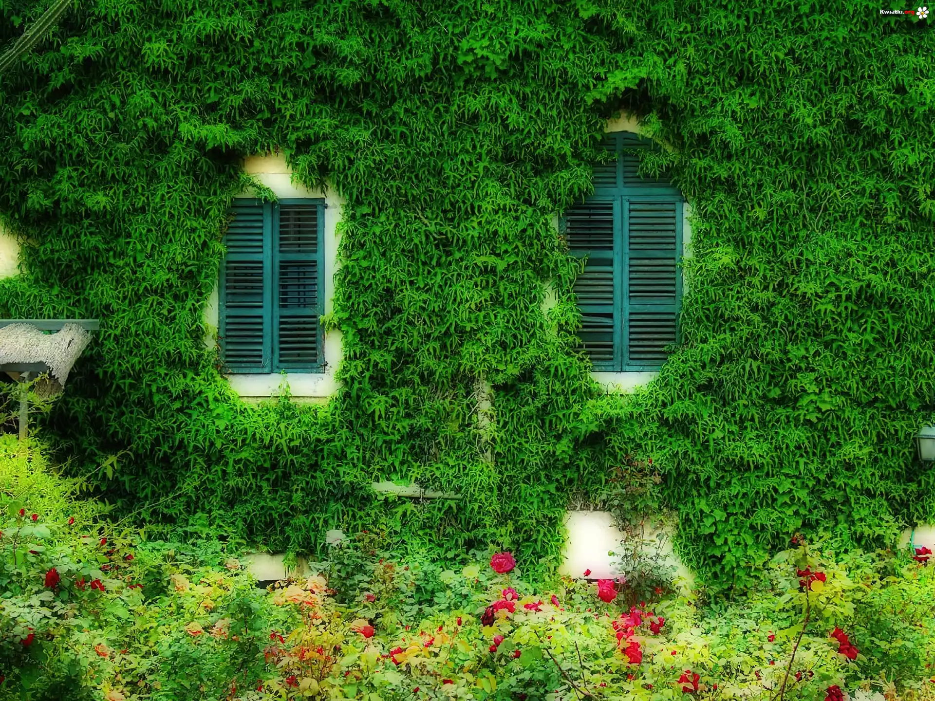 Ściana, Domu, Pokryta, Liśćmi, Kwiaty - Zdjęcia