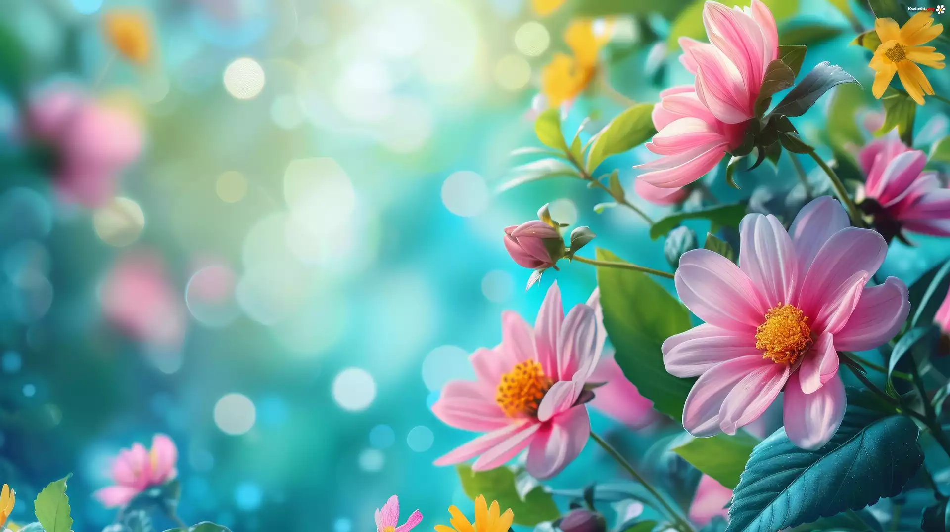 Różowe, Dalie, Pąki, Listki - Zdjęcia