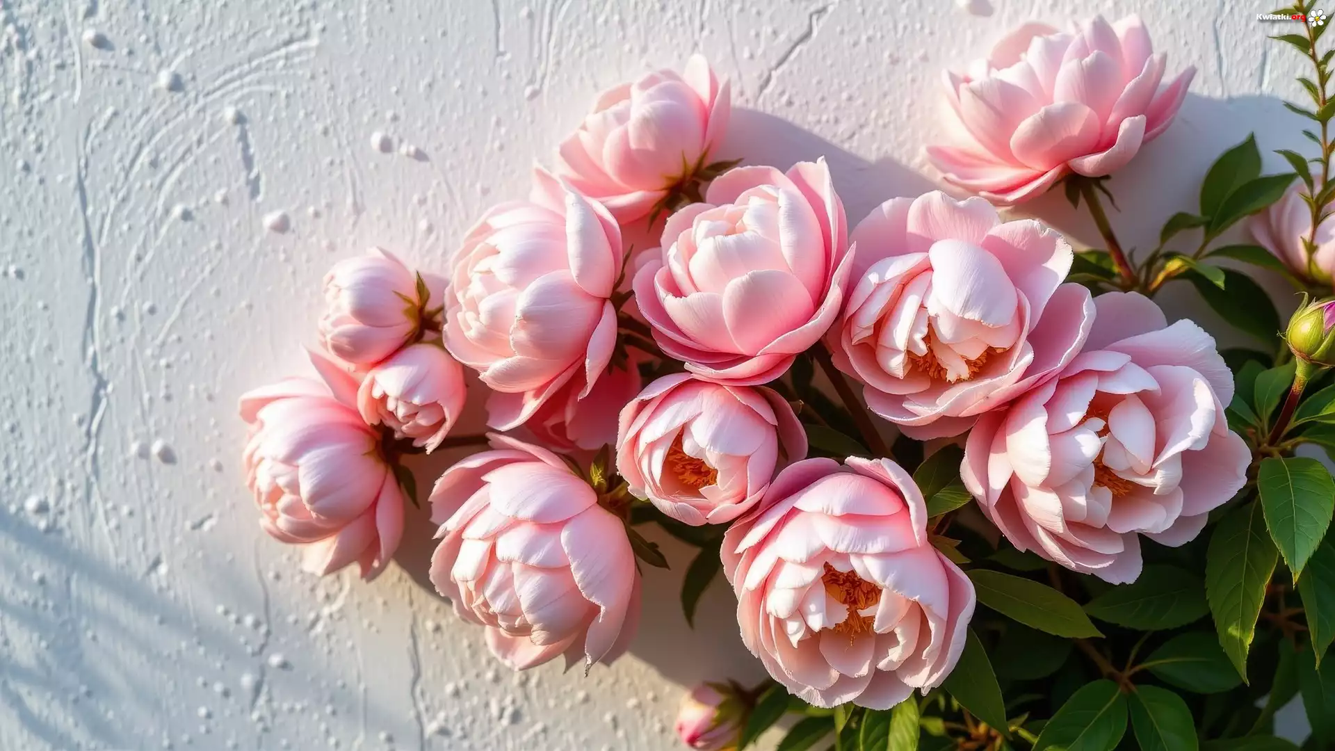 Różowe, Piwonie, Zielone, Listki, Białe, Tło - Zdjęcia