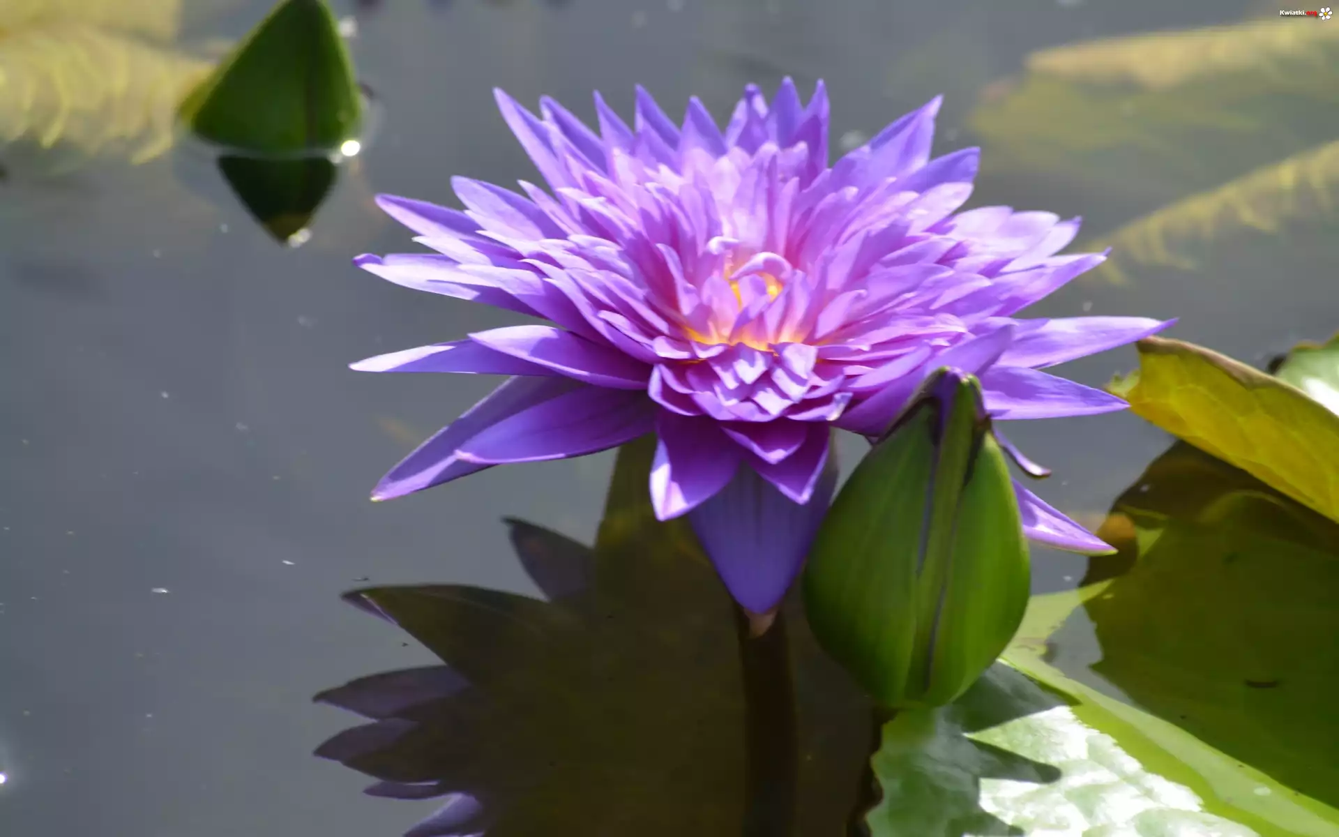 Kwiat, Liście, Lilia wodna - Zdjęcia