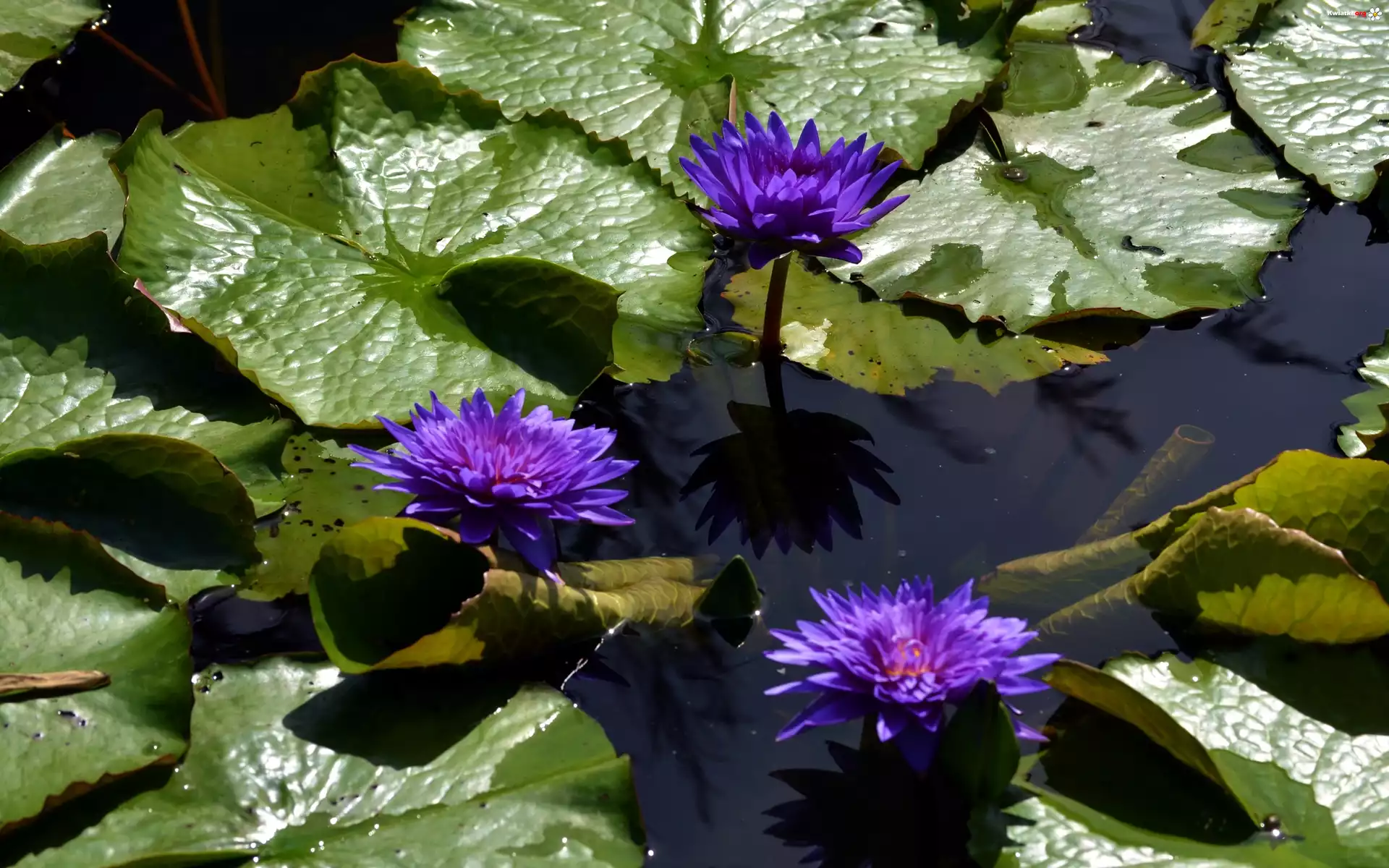 Kwiaty, Liście, Lilia wodna - Zdjęcia