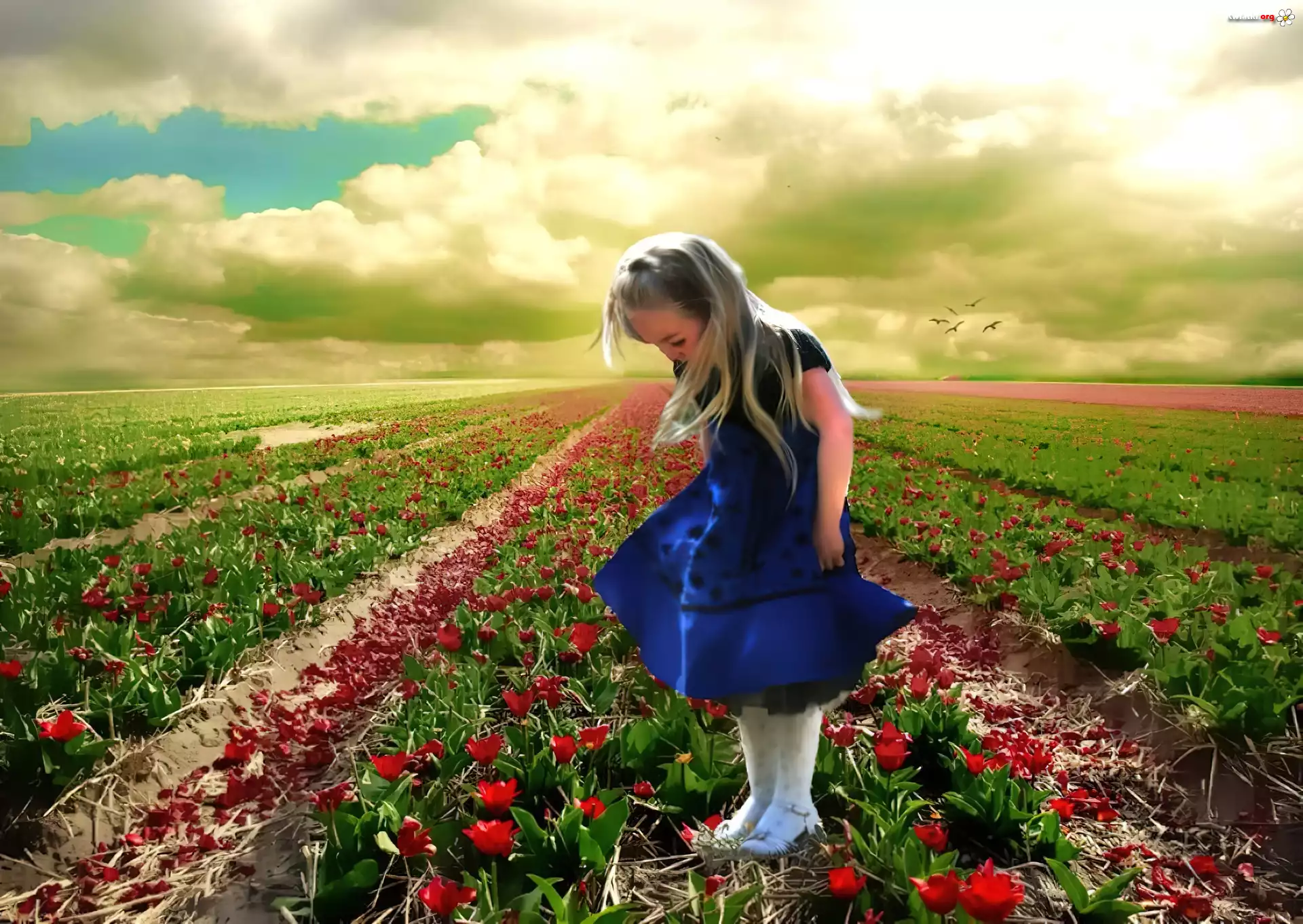 Mała, Dziewczynka, Czerwone, Kwiaty, Uprawa - Zdjęcia