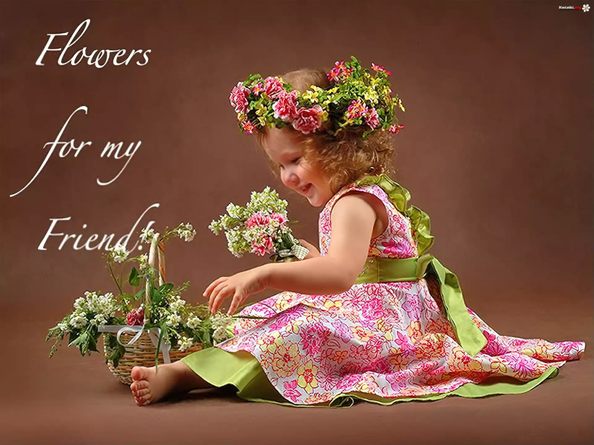 Kwiat Mała, Dziewczynka, Wianek, Kwiaty