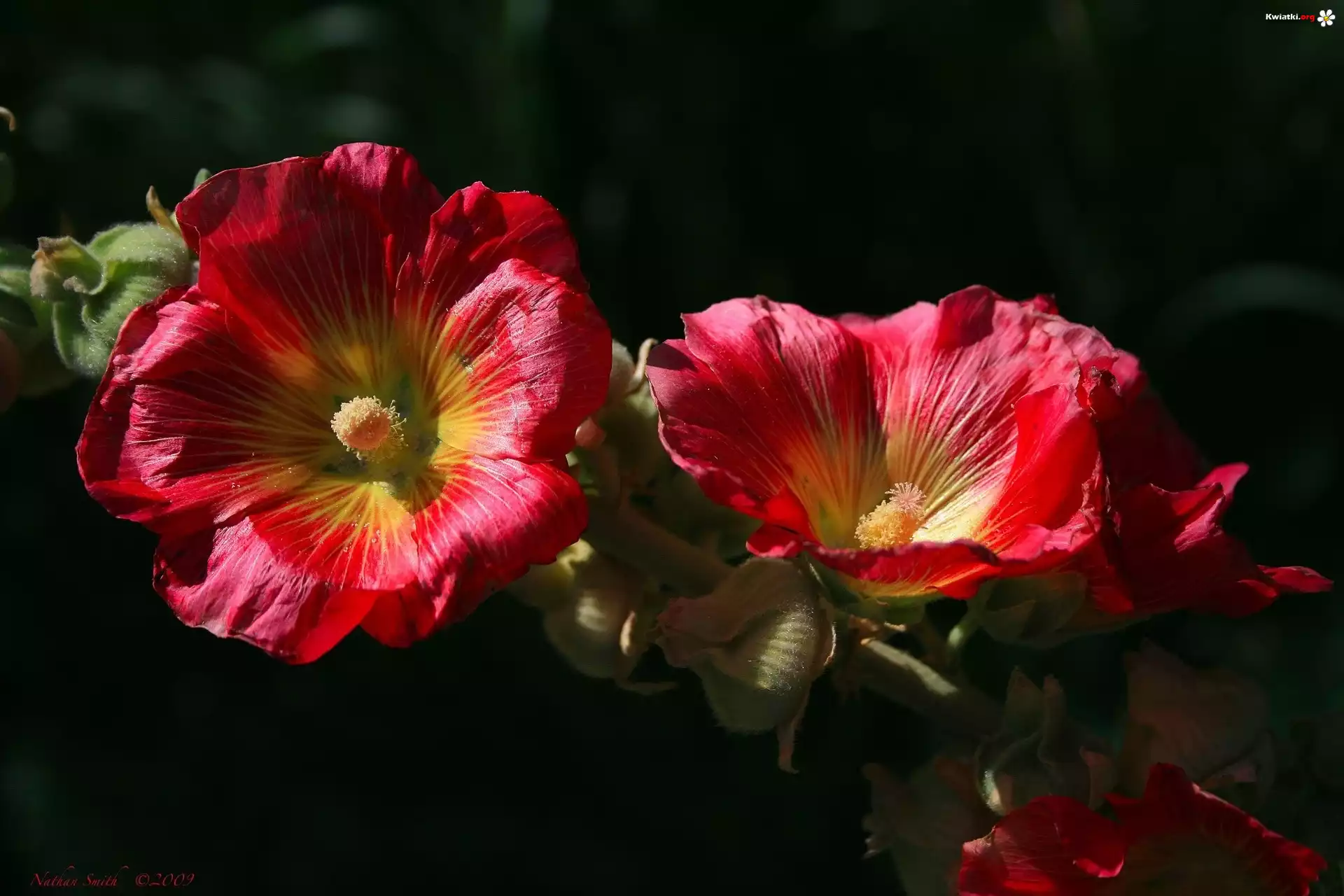 Czerwone, Malwy, Kwiaty - Zdjęcia