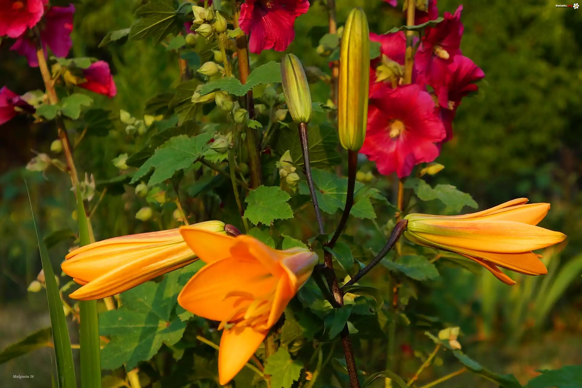 Różowa, Lilia, Srebrne, Liście Kwiaty, Malwy, Płot Kwiat Różowy, Kwiat, Malwy, Pączki Lilia wodna Żółta, Lilia Żółte, Malwy Kwiat, Lilii, Staw Różowe, Malwy Czerwone, Kwiaty, Malwy, Niebieski, Ptak Biała, Lilia wodna Różowe, Malwy, Kwiaty Malwa, Płot, Deski Lilia tygrysia