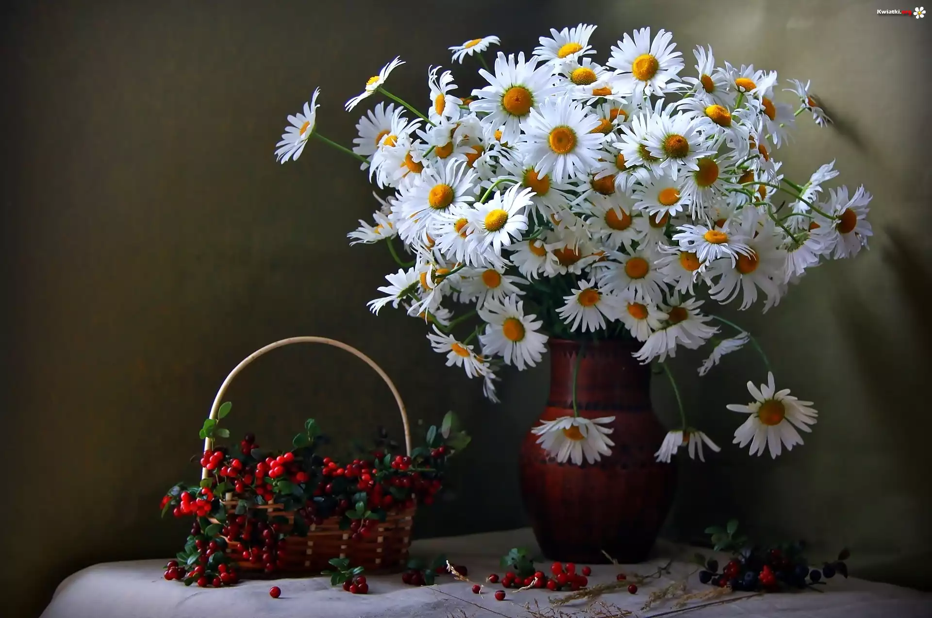 Bukiet, Margerytki, Żurawina - Zdjęcia