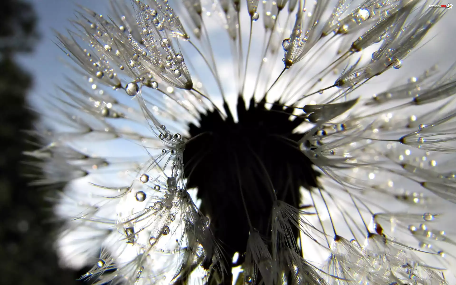 Kwiat Mniszek, Nasiona, Krople, Makro
