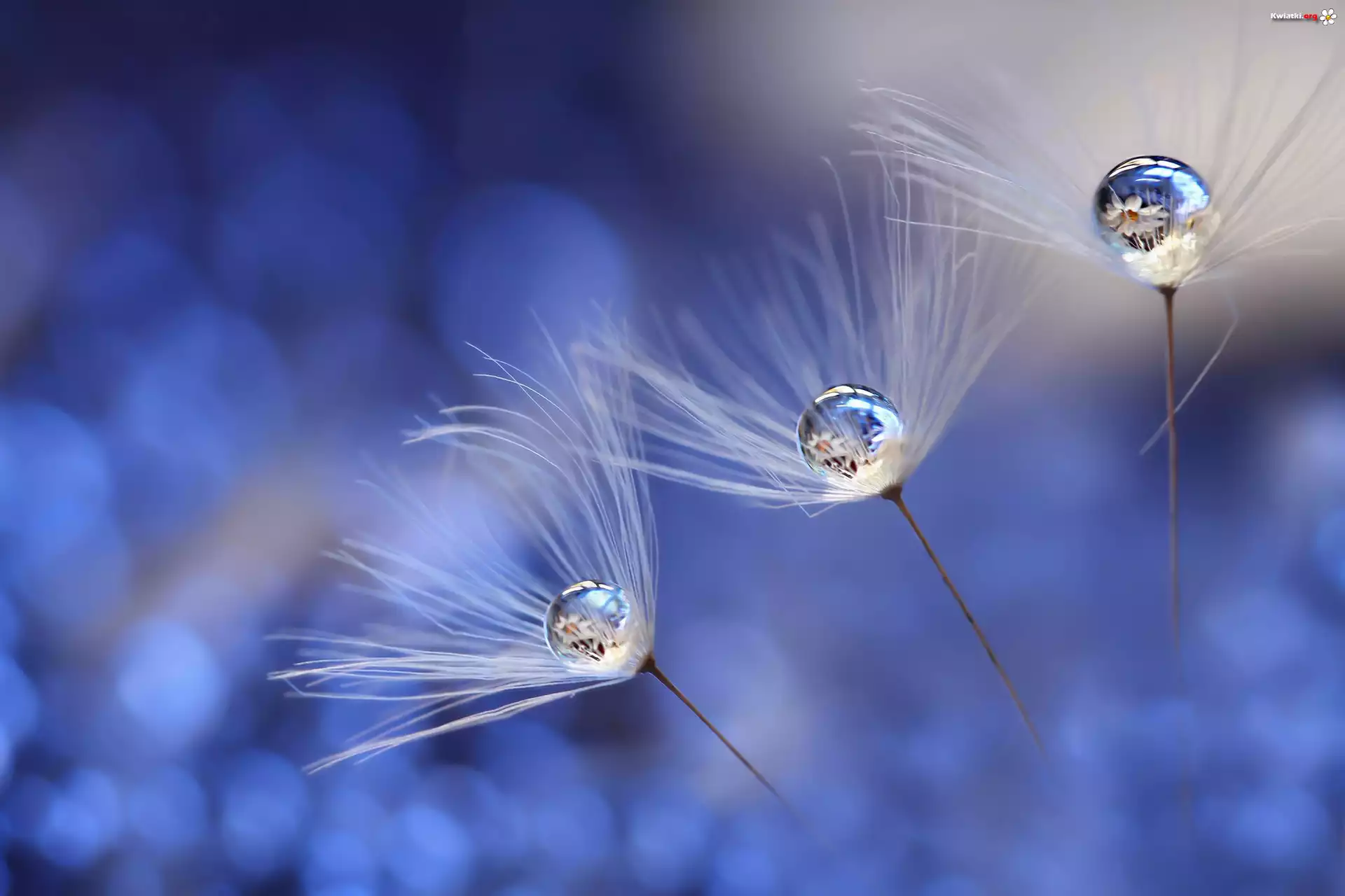 Mniszek, Zbliżenie, Niełupki, Krople, Makro - Zdjęcia
