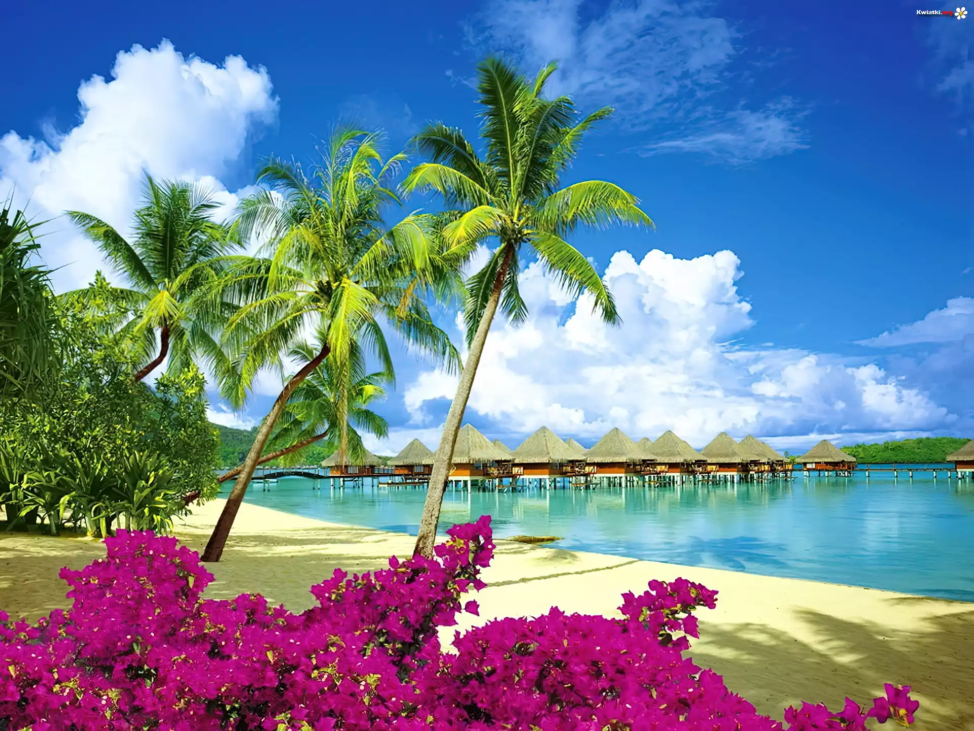 Morze, Plaża, Kwiaty, Palmy - Zdjęcia