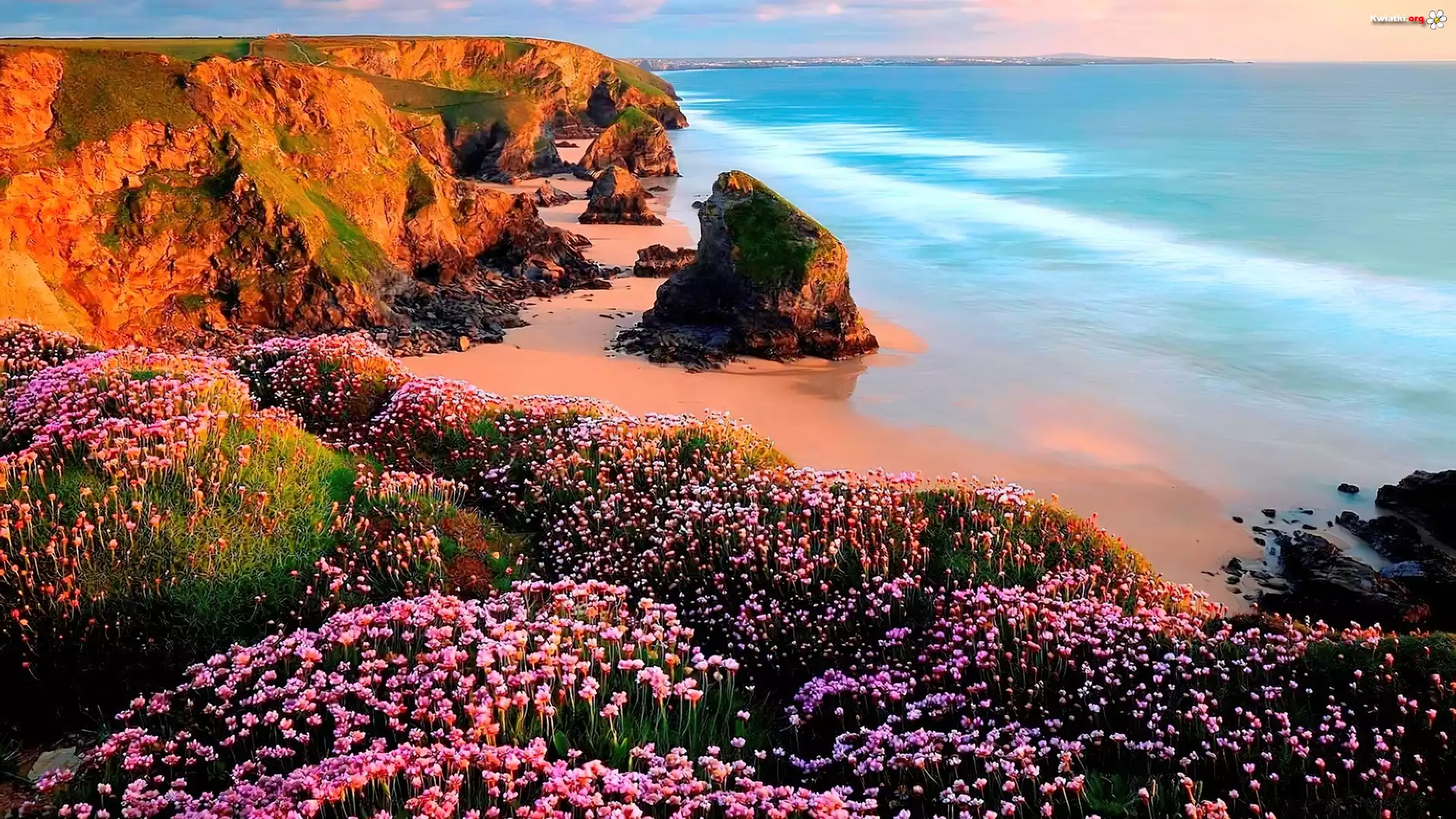 Morze, Klify, Kępy, Różowych, Kwiatów - Zdjęcia