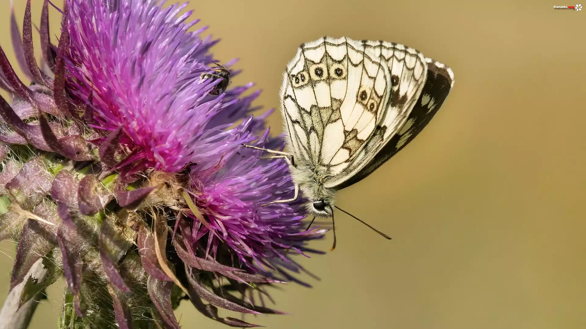 Motyl, Polowiec szachownica, Roślina, Oset, Zbliżenie - Zdjęcia