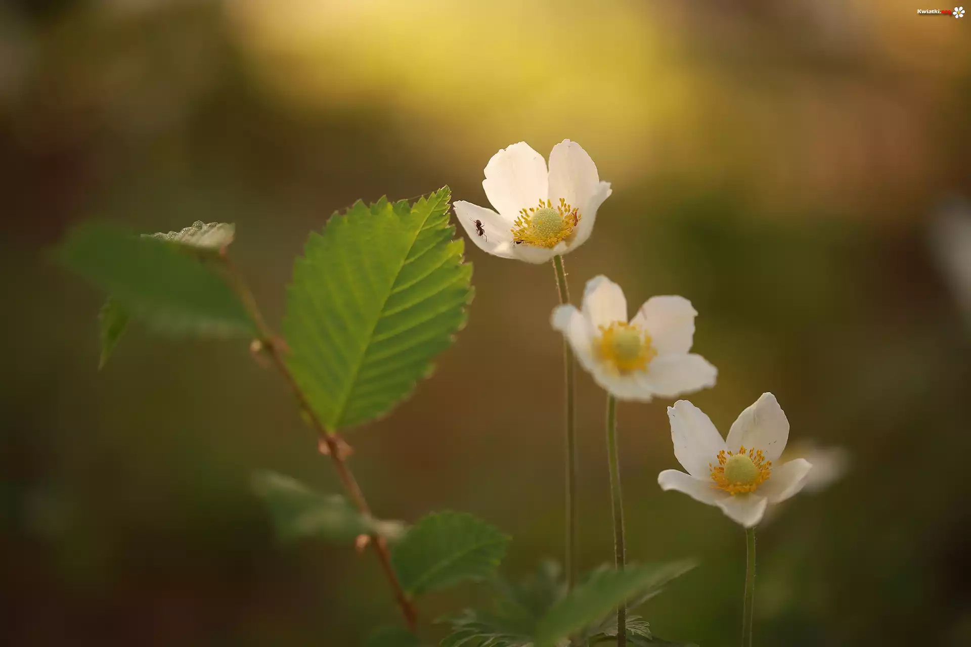 Białe, Zawilce, Kwiaty, Mrówka - Zdjęcia