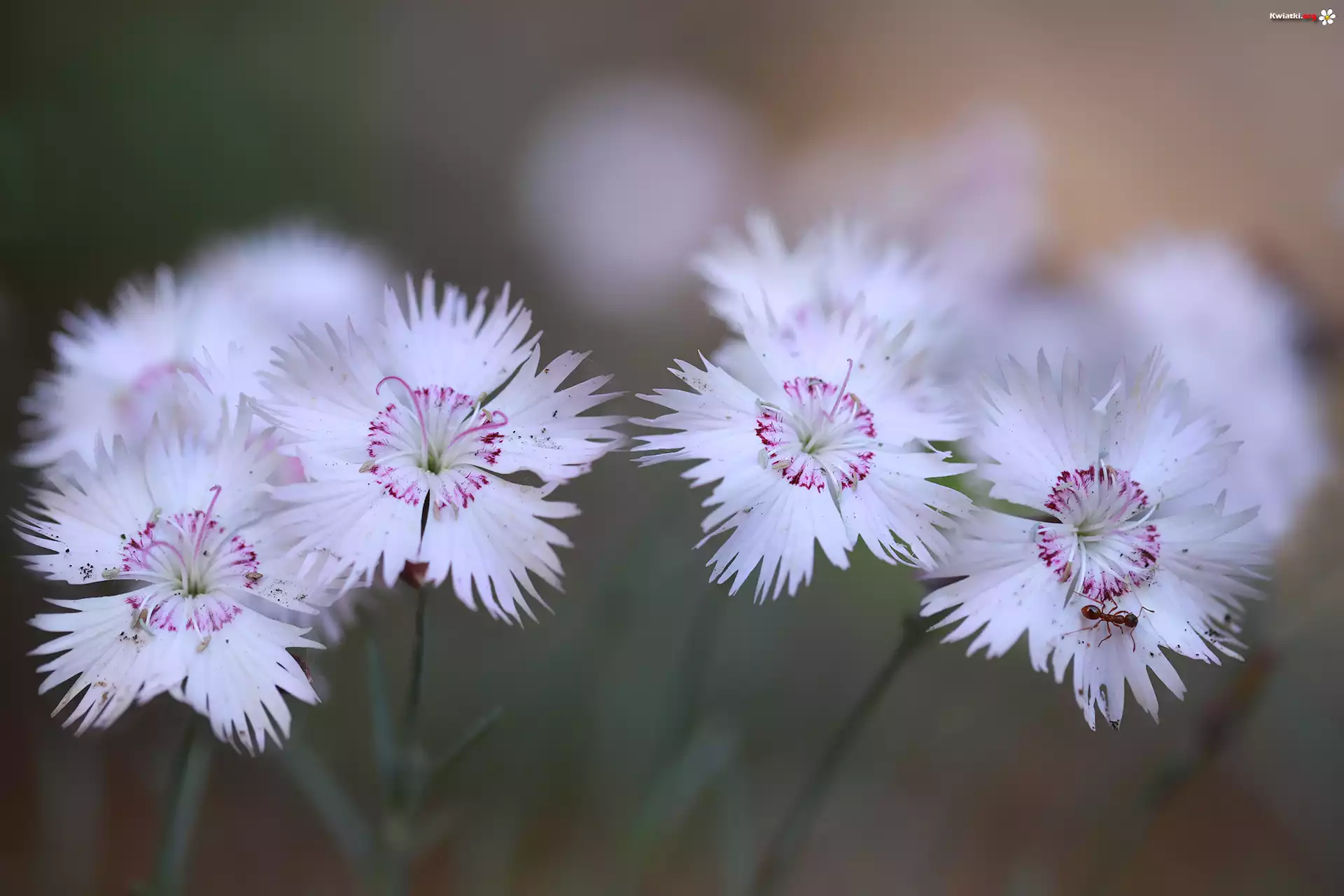Goździki, Białe, Kwiaty, Mrówka - Zdjęcia