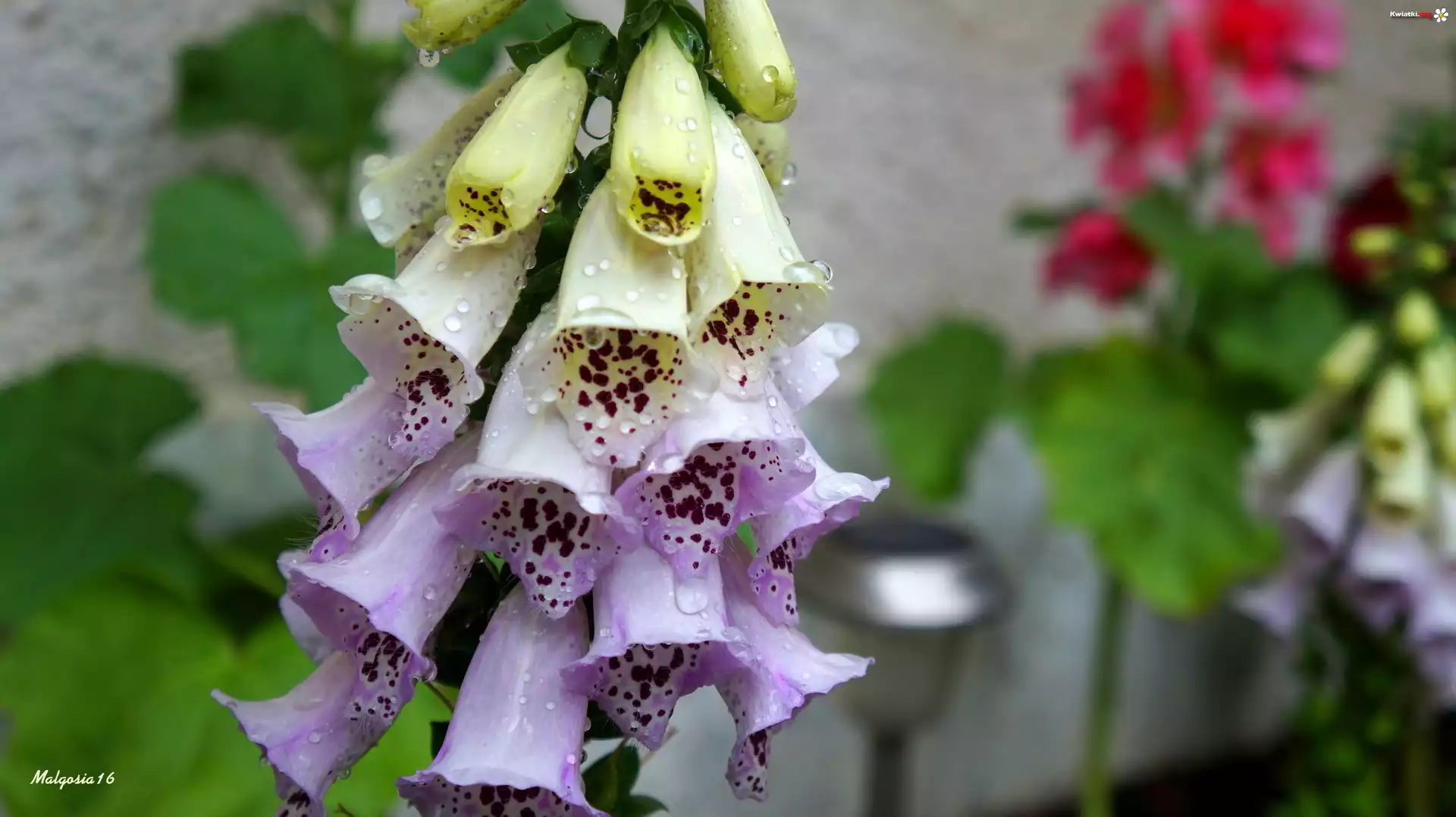 Naparstnica purpurowa, Krople, Rosa - Zdjęcia