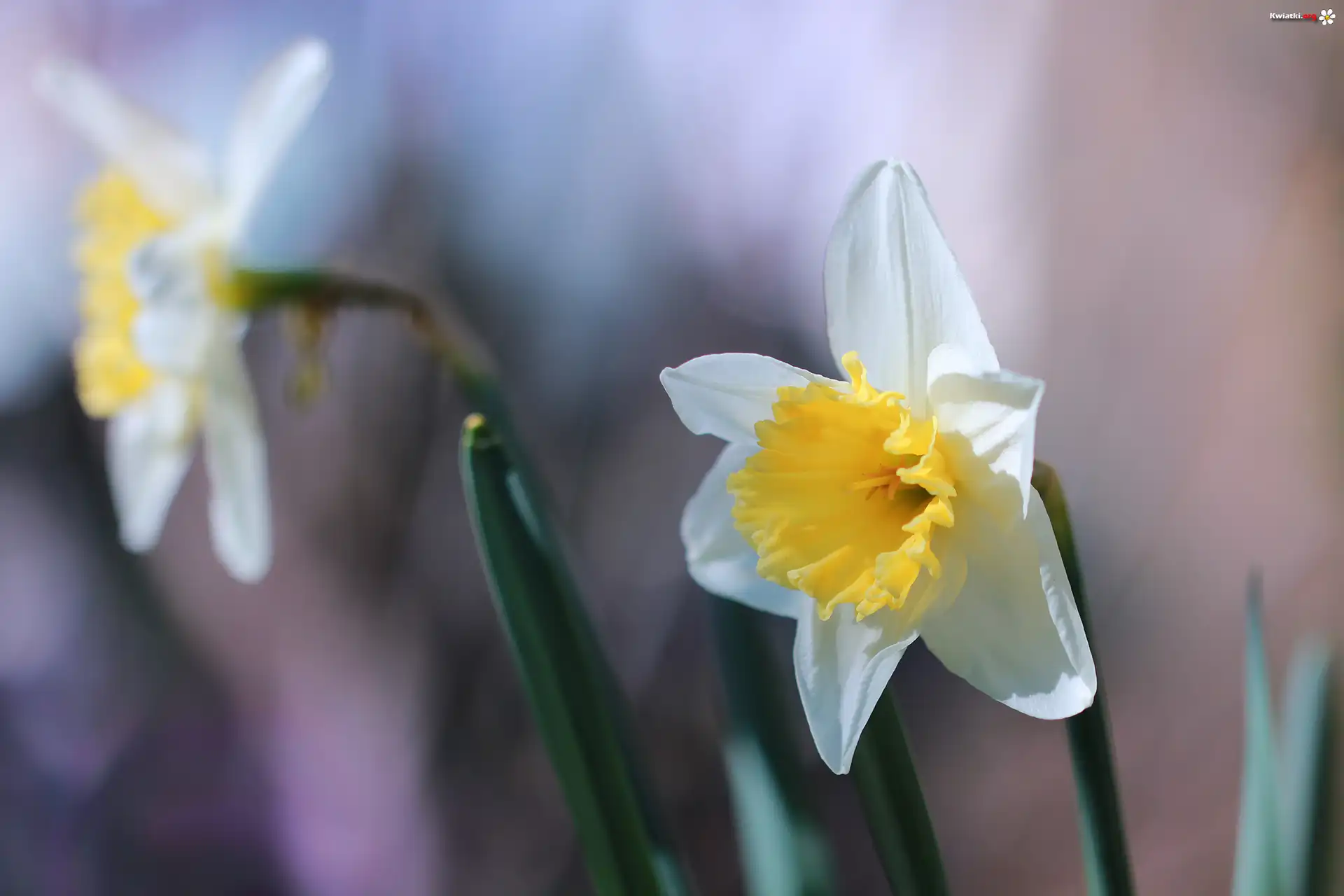 Kwiat Narcyz, Kwiat, Żółto, Biały