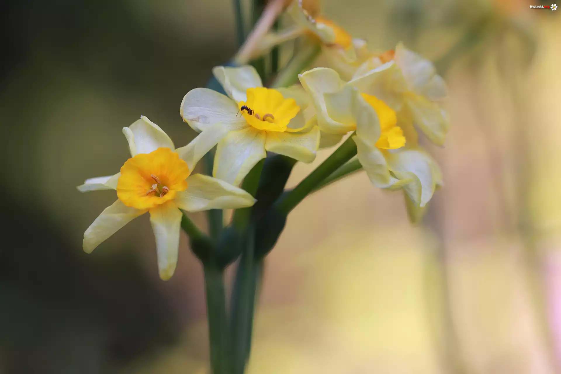 Narcyzy, Kwiaty, Mrówka - Zdjęcia