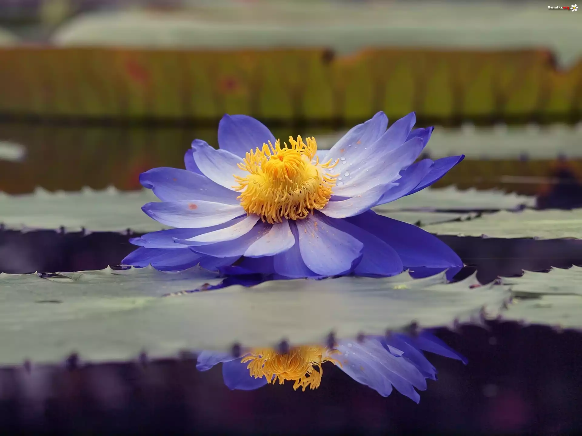 Kwiat Niebieski, Kwiat, Woda, Odbicie, Lilia wodna
