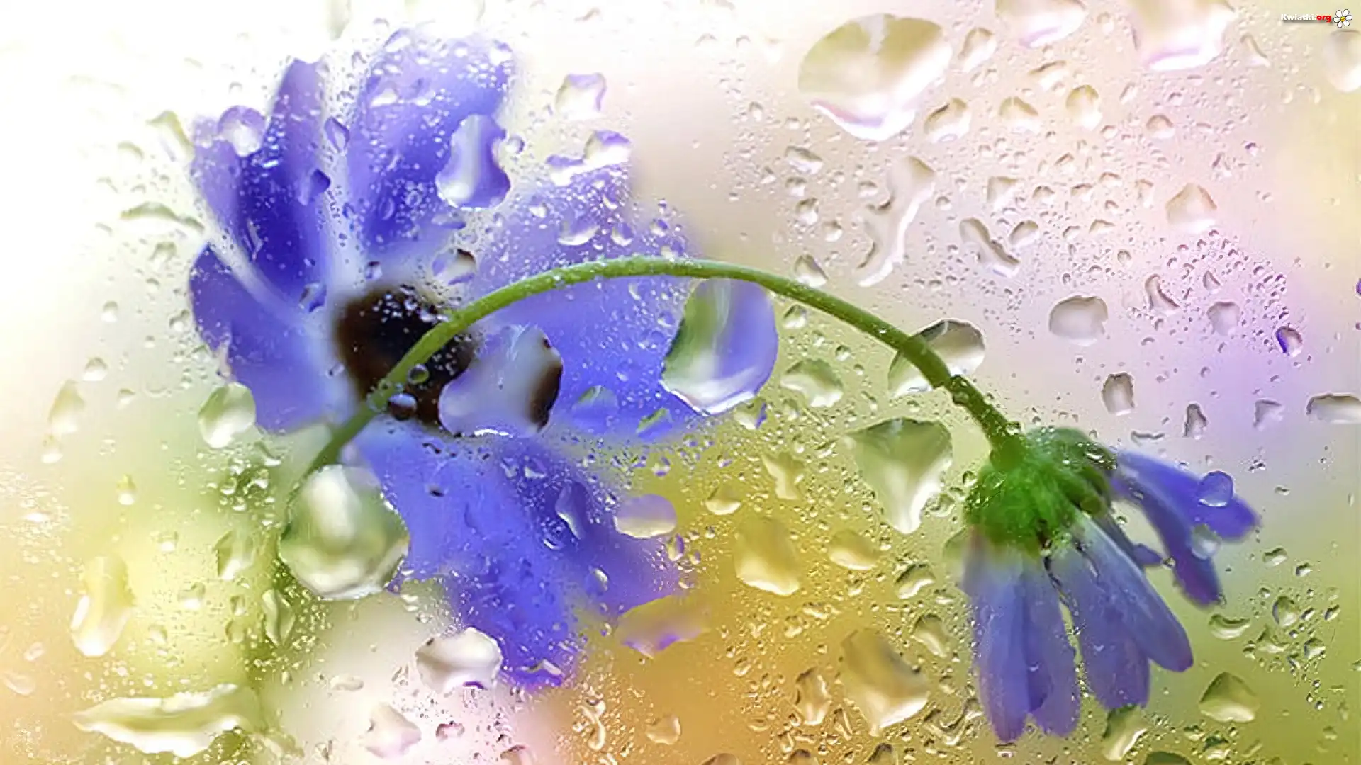 Kwiat Niebieskie, Kwiaty, Krople, Deszczu