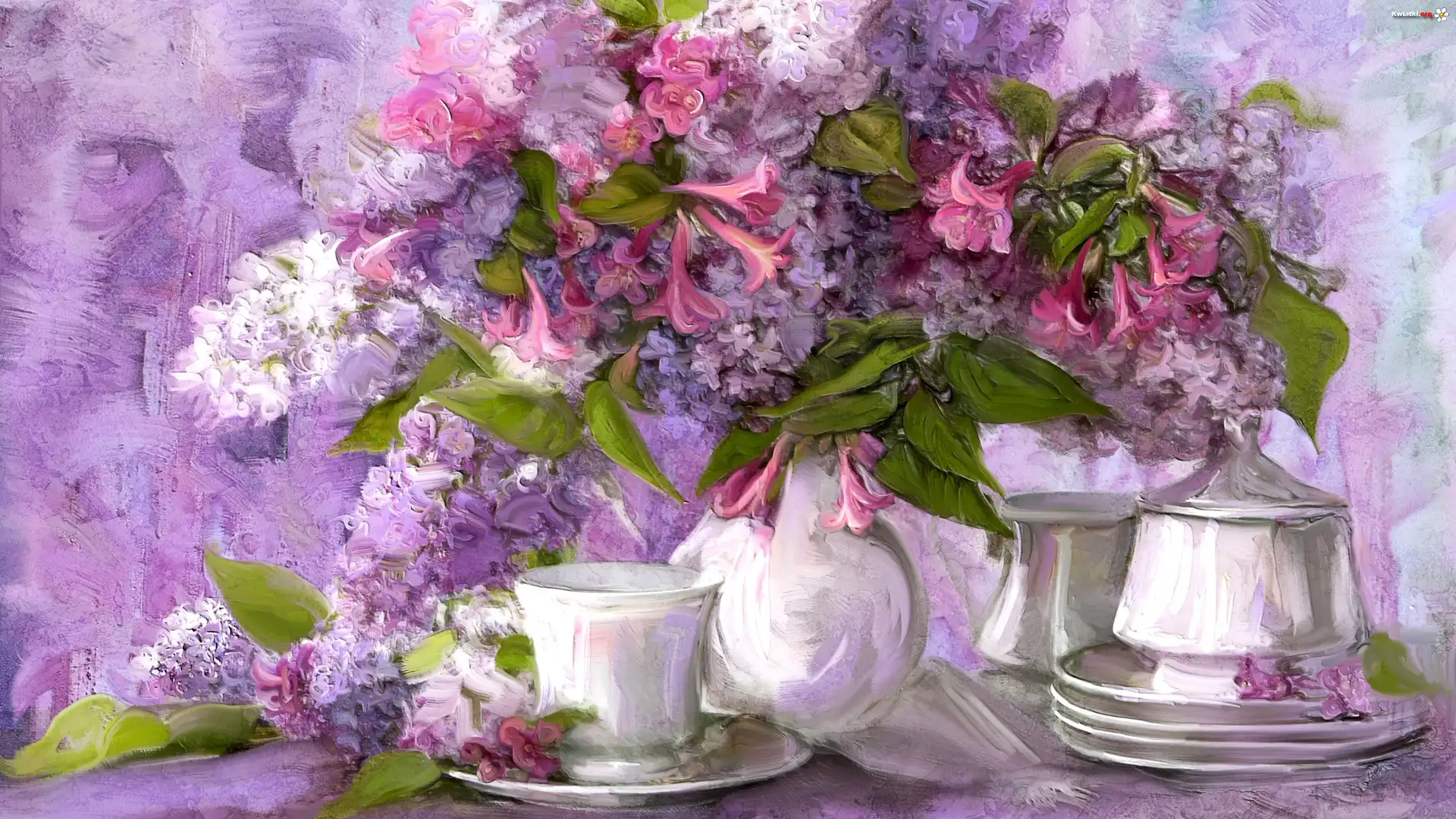 Obraz, Zastawa, Stołowa, Bukiet, Kwiatów - Zdjęcia