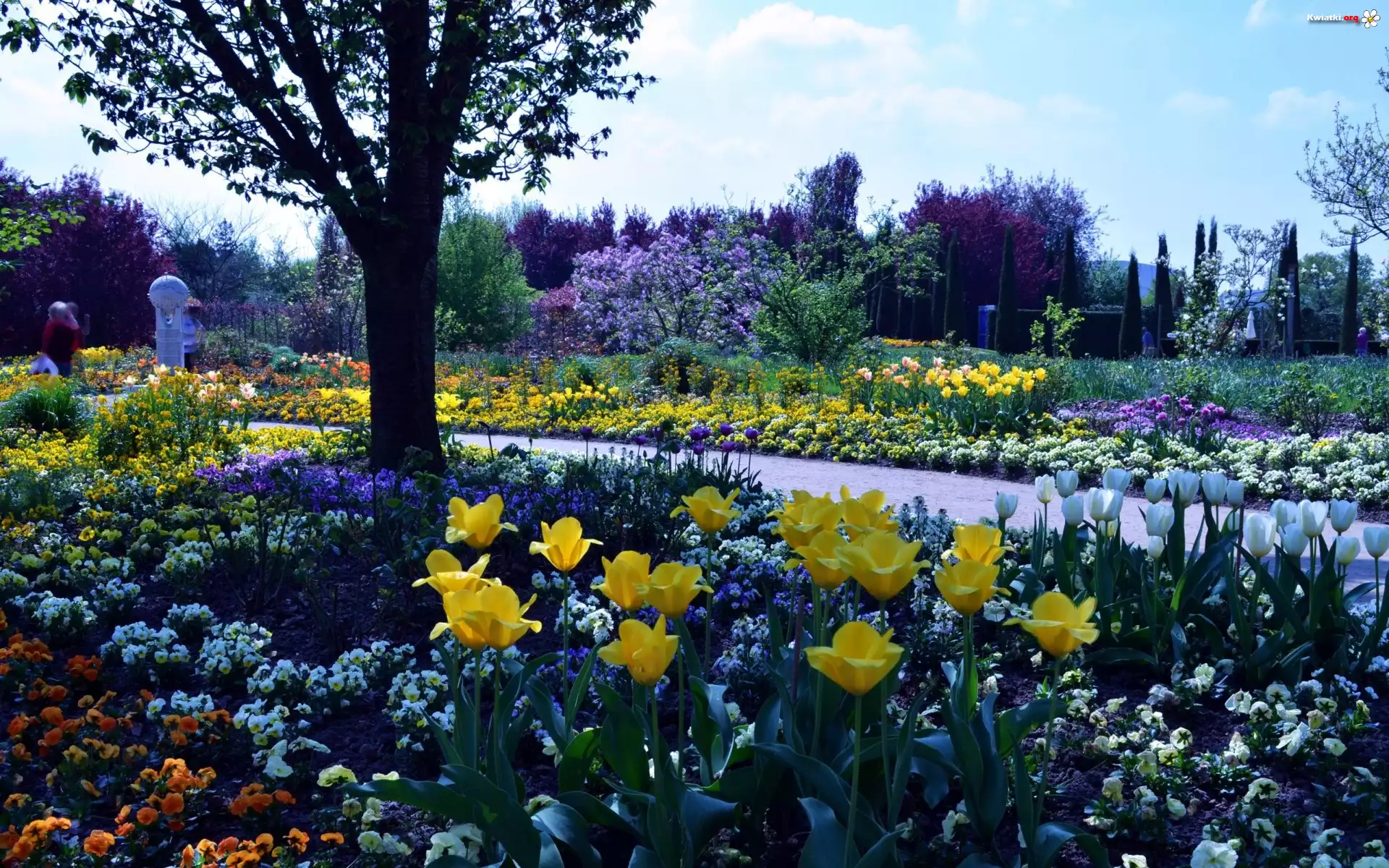 Kwiat Ogród, Kwitnące, Drzewa, Tulipany, Alejka