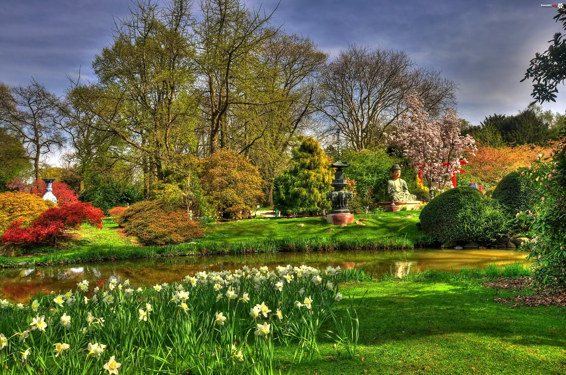 Kwiat Ogród, Kwiaty, Zieleń, Woda