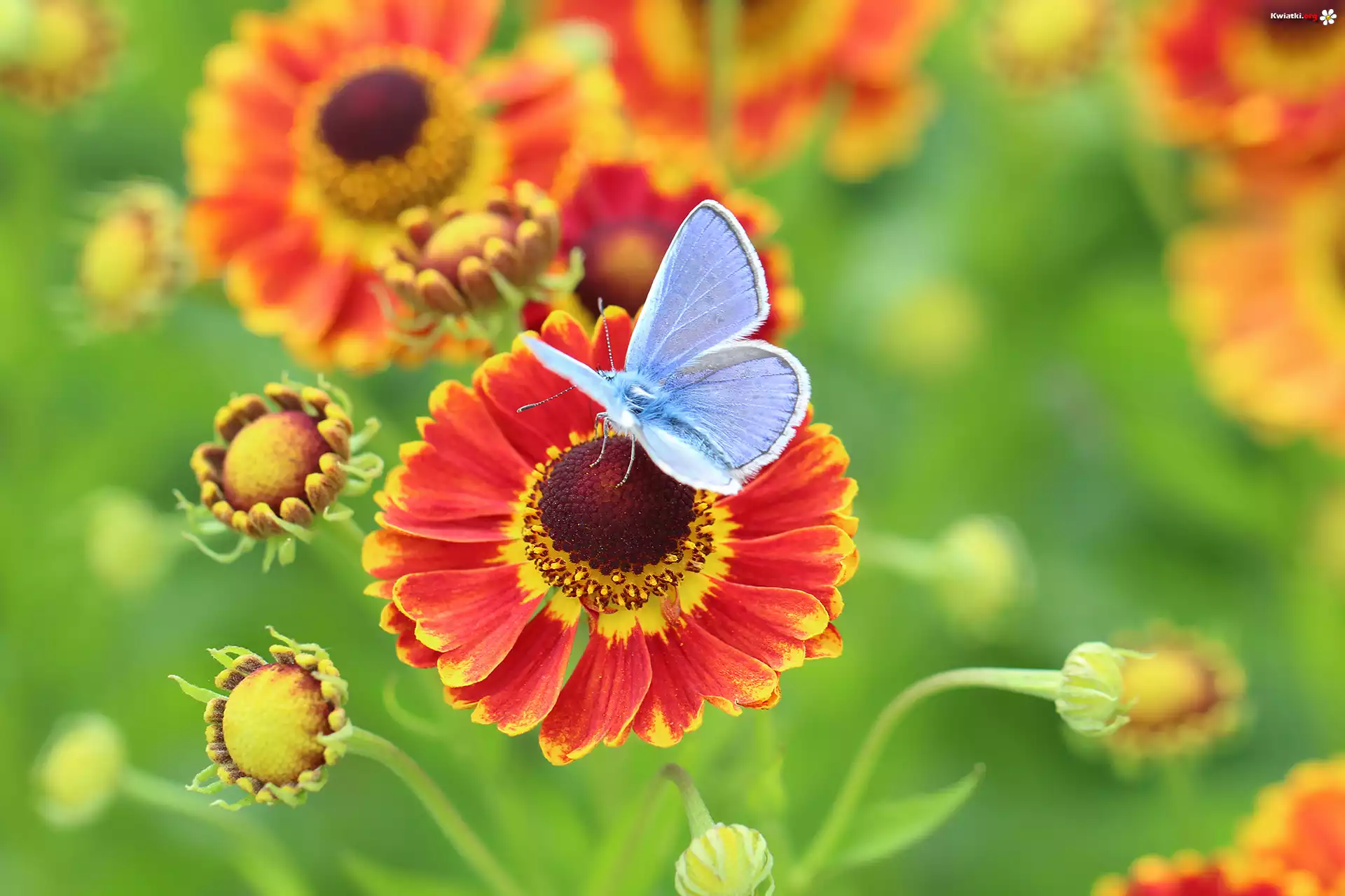 Kwiat Dzielżan ogrodowy, Kwiaty, Motyl, Modraszek ikar, Owad