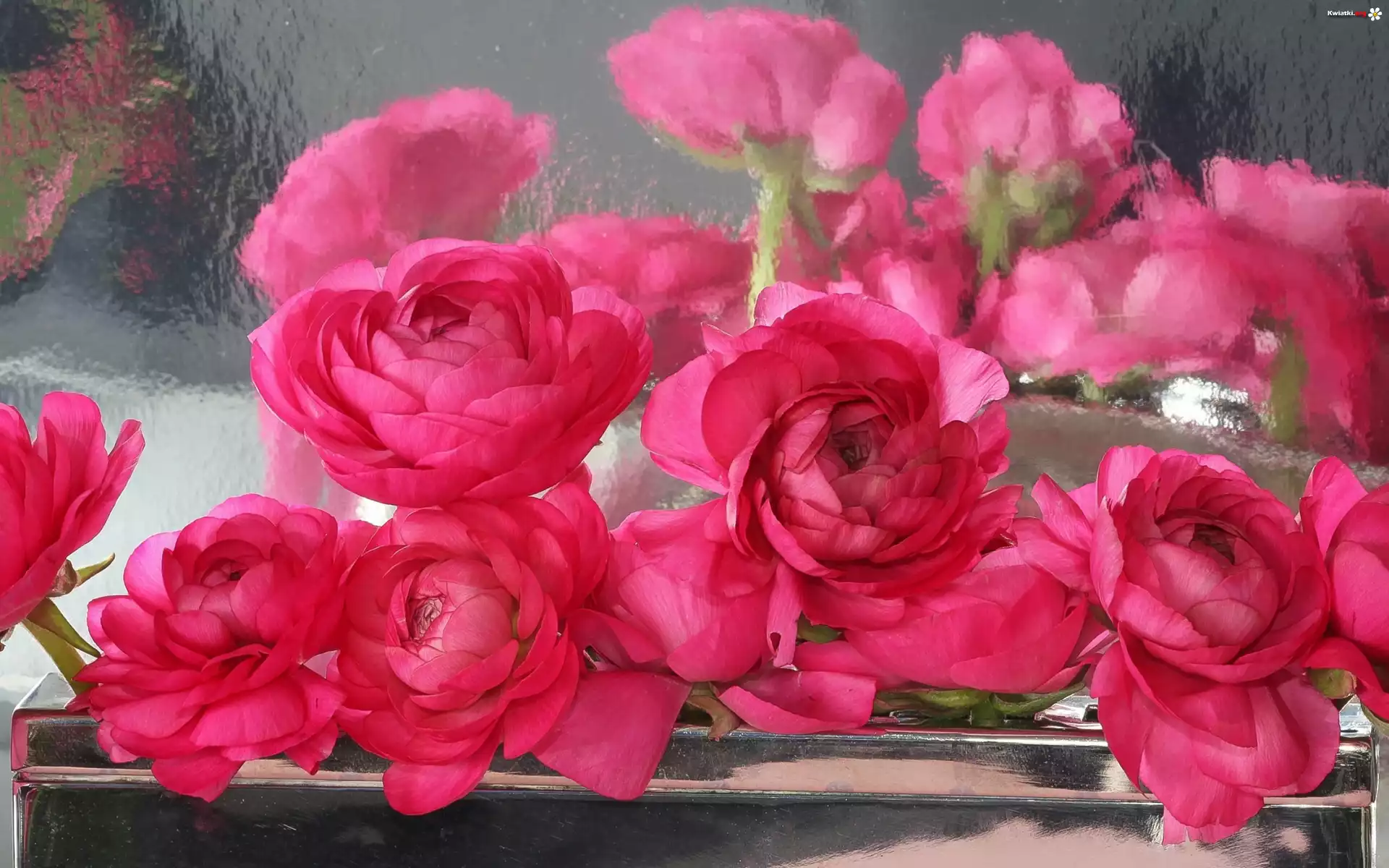 Piwonie, Okno, Odbicie - Zdjęcia