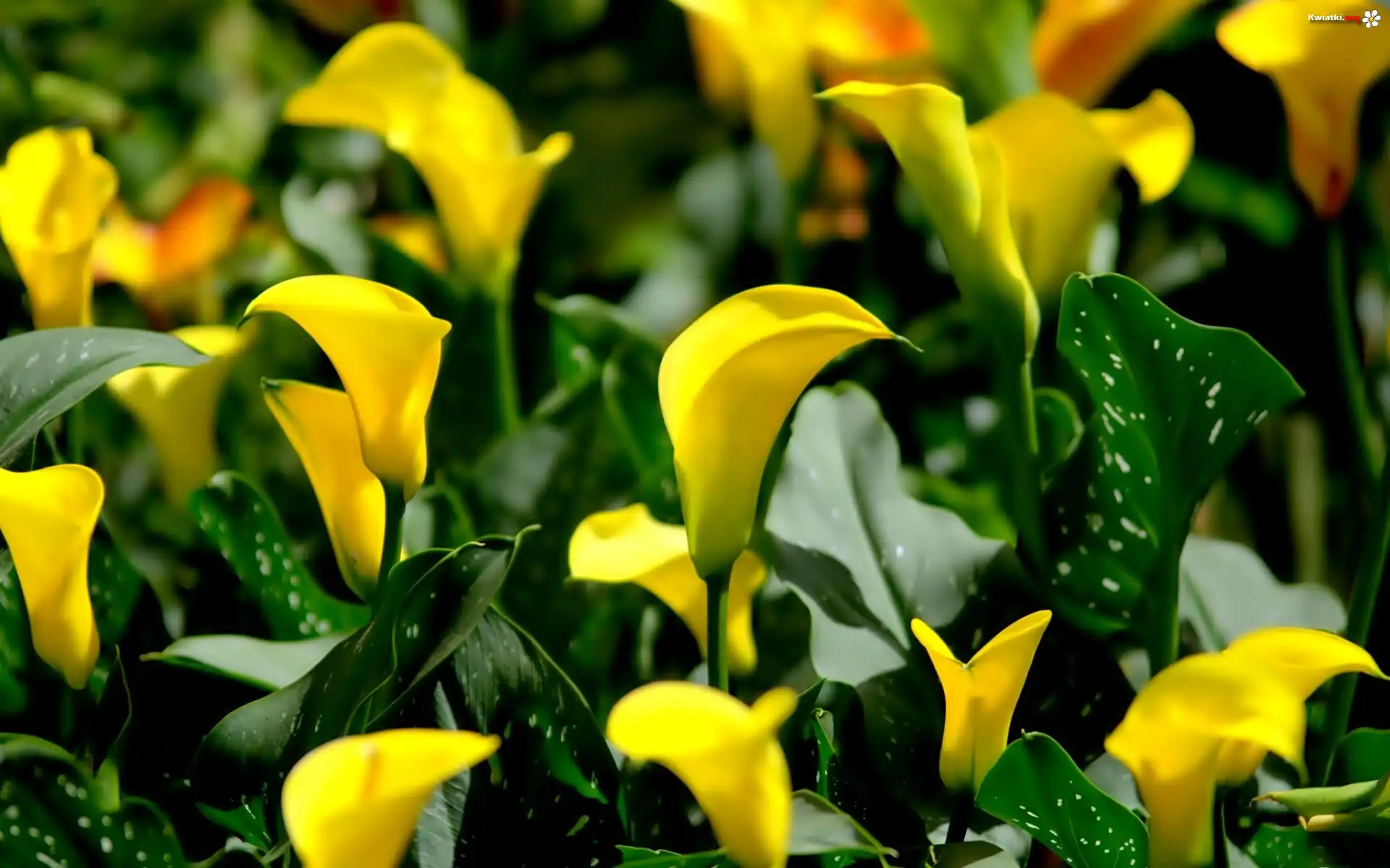 Żółte, Kwiaty, Kalie - Zdjęcia