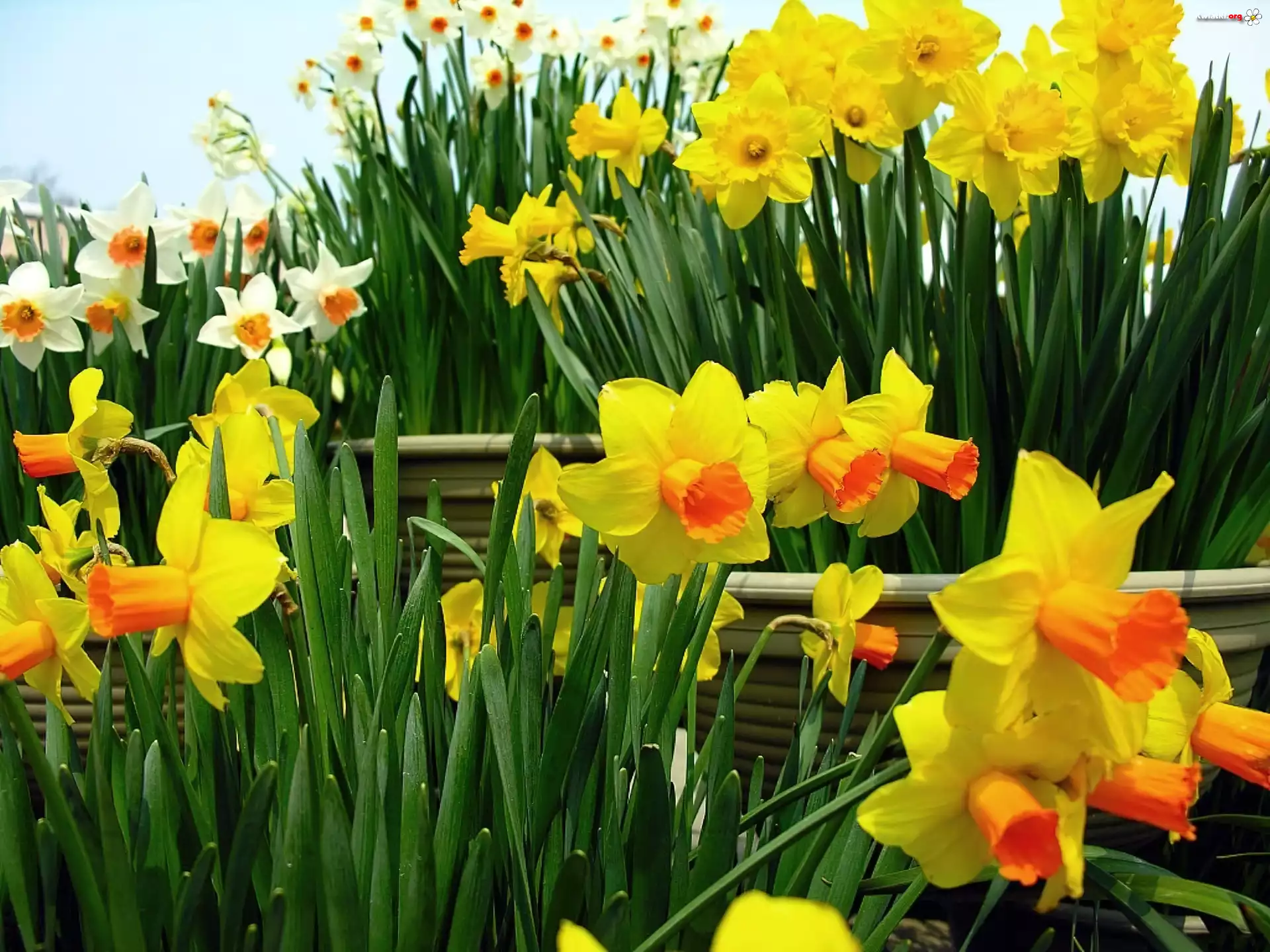 Kwiat, Żonkila Kwiat, Narcyz Żonkil Narcyz, Kwiat Czerwony, Przykoronek Kwiaty, Kępka, Narcyzy żonkile Żonkile, Żółta, Biedronka Niebo, Żonkile Mieszaniec tazetta Żonkile, Ogród Żonkile, Łodygi Biały, Narcyz Kwiaty, Narcyzy, Tulipany, Bratki Kwiat, Narcyz