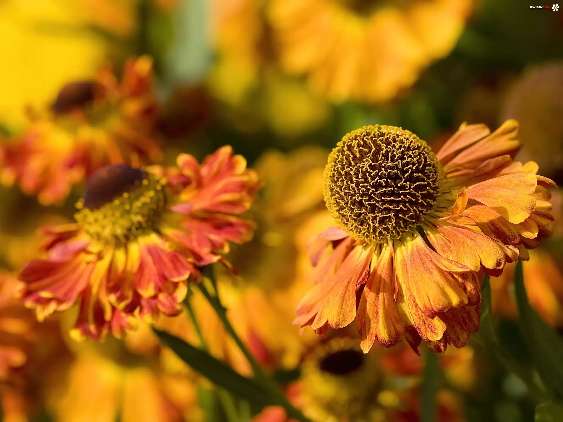 Pomarańczowo, Żółte, Kwiaty, Dzielżan - Zdjęcia